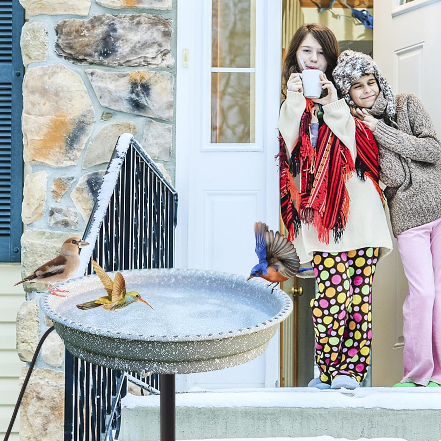 • 【Upgraded Heated Birdbath】 Winter heated bird bath is built in 120V 75w heating element, which can provide high-quality ice-free water for birds in cold winter, and solve the problem of birds drinking water in winter. The bird bath becomes an oasis in the snow as more birds are attracted to it and bring spring to the backyard