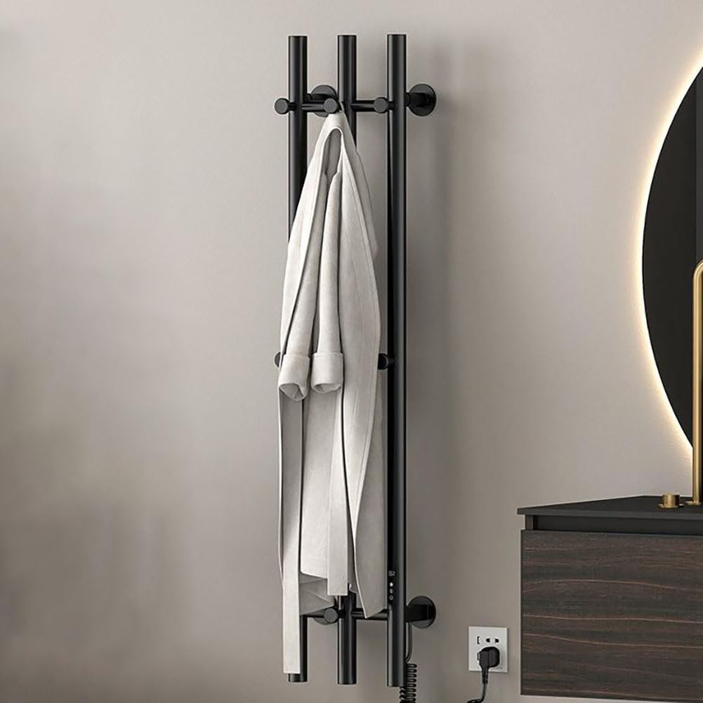 This electric towel rack heats up quickly after being turned on. Its 120W power ensures rapid and even heat distribution, keeping your bathroom items warm and dry. The wall-mounted design saves valuable bathroom space and adds a touch of warmth and style!Colors: Black, Gray, WhiteMaterial: Stainless SteelDimensions: 19.5*14*120CMPower: 120WFunctions: Constant Temperature/Timer/DryingInstallation Method: DrillingPackage Contents: Heated Towel Rack *1