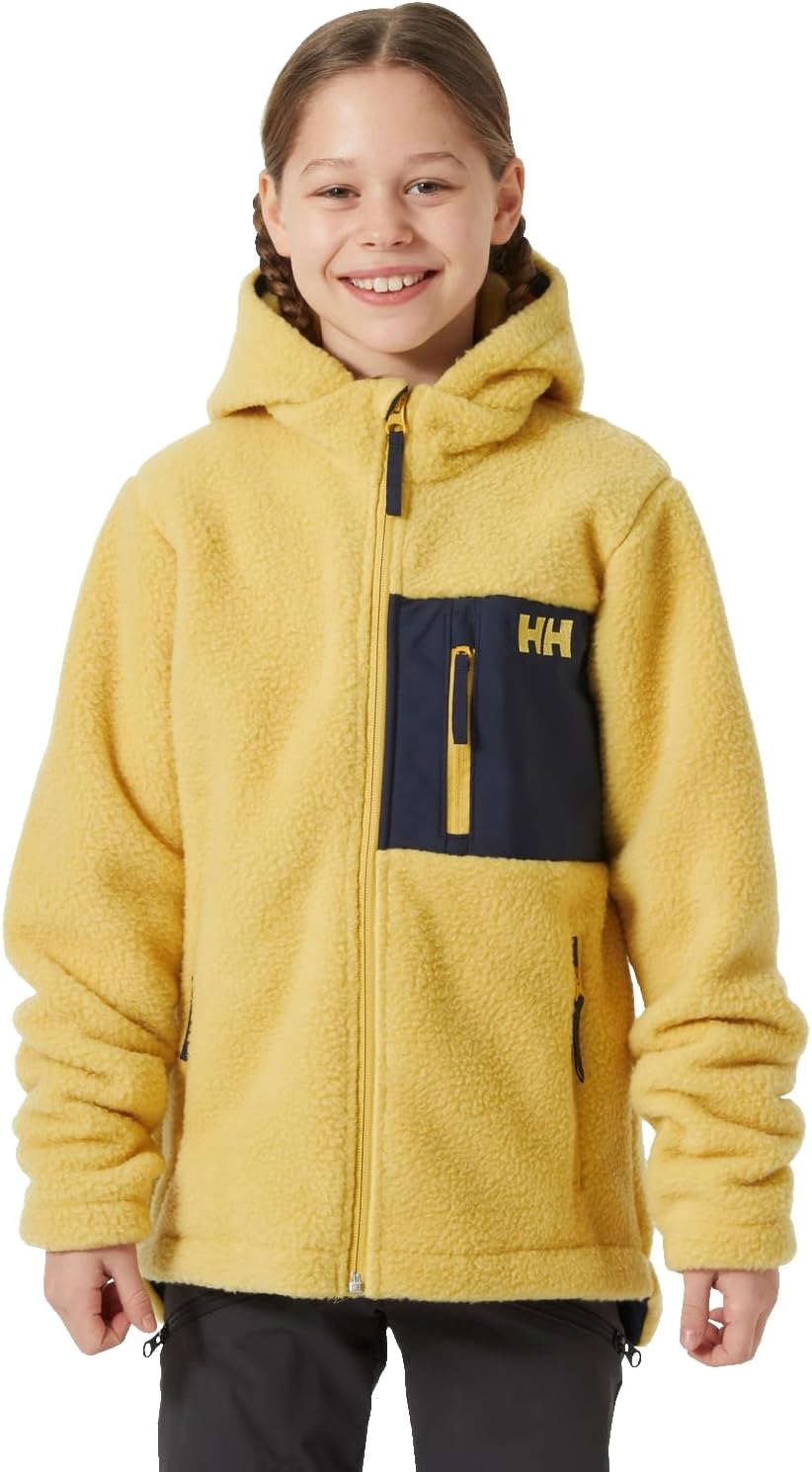 We designed this pile fleece kids’ jacket to be useful in every season. It’s the perfect standalone for in-between weather and an excellent layer when the cold arrives. Made with 100% recycled soft-pile fleece, it’s very comfortable and warm. In addition to the hood, it has two hand pockets with zipper closure and a chest pocket for extra storage.