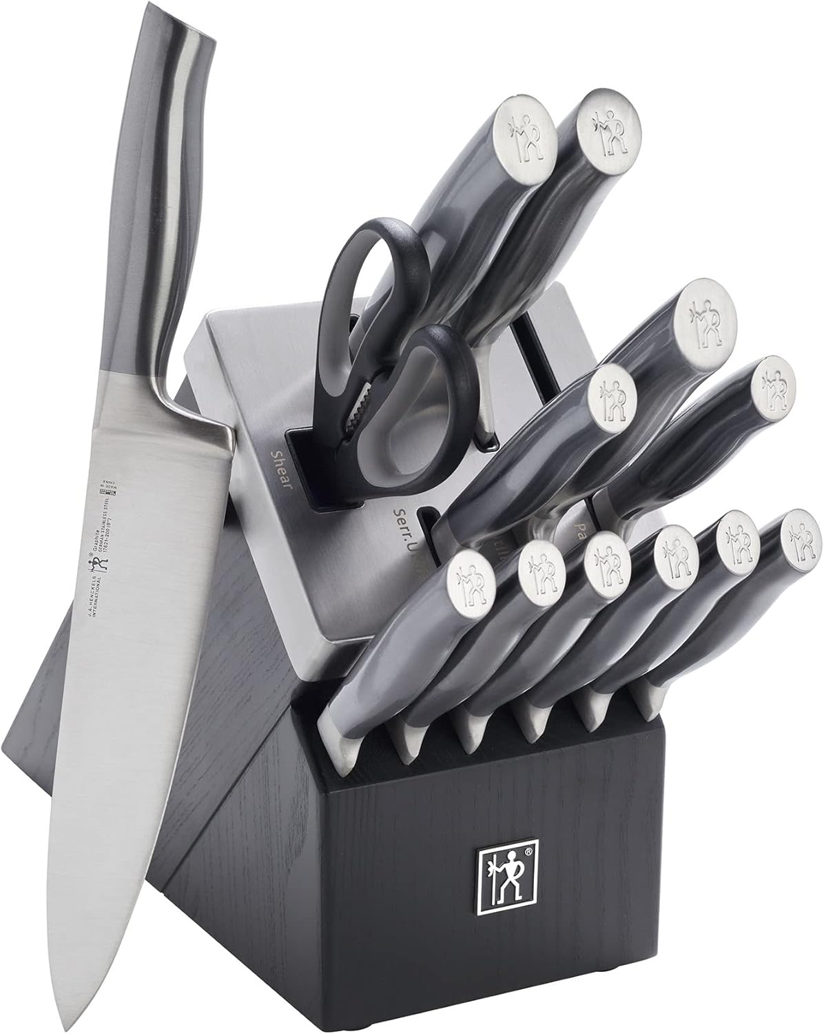 | Included Components | 3" Paring Knife; 4" Paring Knife; 5" Serrated Utility Knife; 5.5" Prep Knife; 6" Utility Knife; 5.5" Boning Knife; 7" Santoku Knife; 8" Bread Knife; 8" Carving Knife; 8" Chef's Knife; 4.5" Steak Knives (8); Kitchen Shears; Self-Sharpening Knife Block |