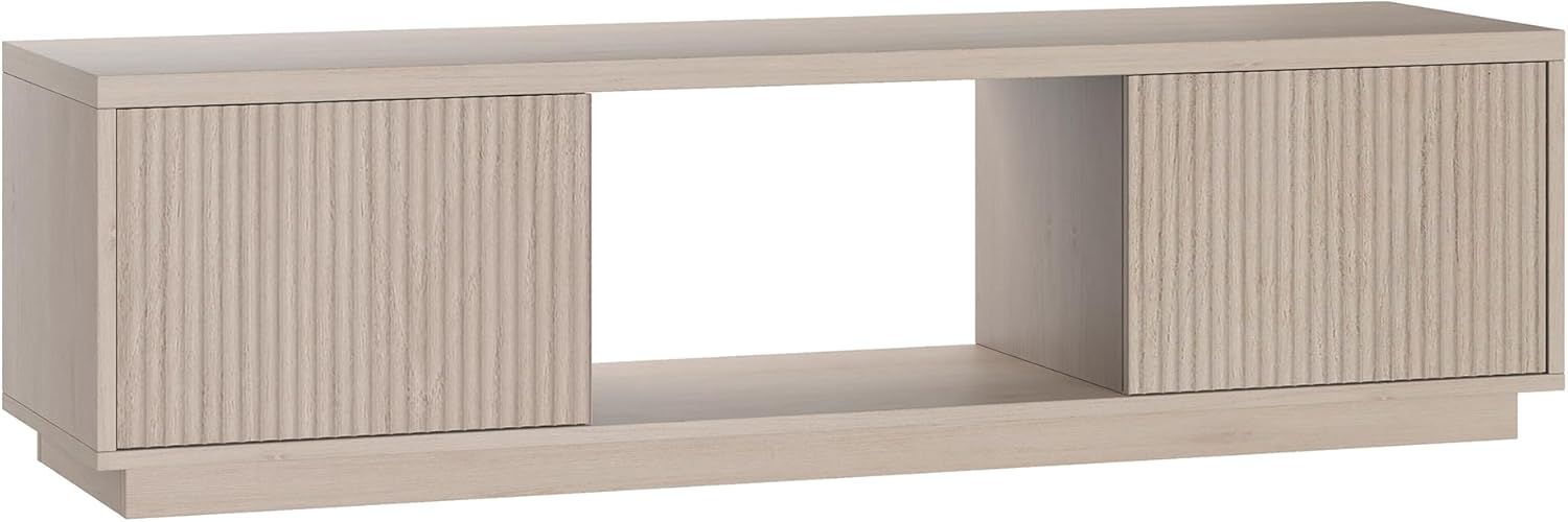 Create a polished and functional entertainment space with the Henn&Hart Reeded TV Stand for TVs up to 78" with 2 Side Storage Cabinets and Open Center Storage. The clean-lined profile is enhanced by beautifully textured vertical fluting across the cabinet doors, bringing depth and architectural interest to your living room, family room, or office. It accommodates TVs up to 78 inches while offering a mix of open and concealed storage options to suit your organizational needs. Two side cabinets keep clutter hidden, while the center open shelf provides easy access to media players or decorative pieces. Cable management cutouts keep cords neatly tucked away, and the durable engineered wood construction ensures lasting performance. Whether you're furnishing a living room, family room, or office, this TV stand makes a versatile and modern addition to your home.