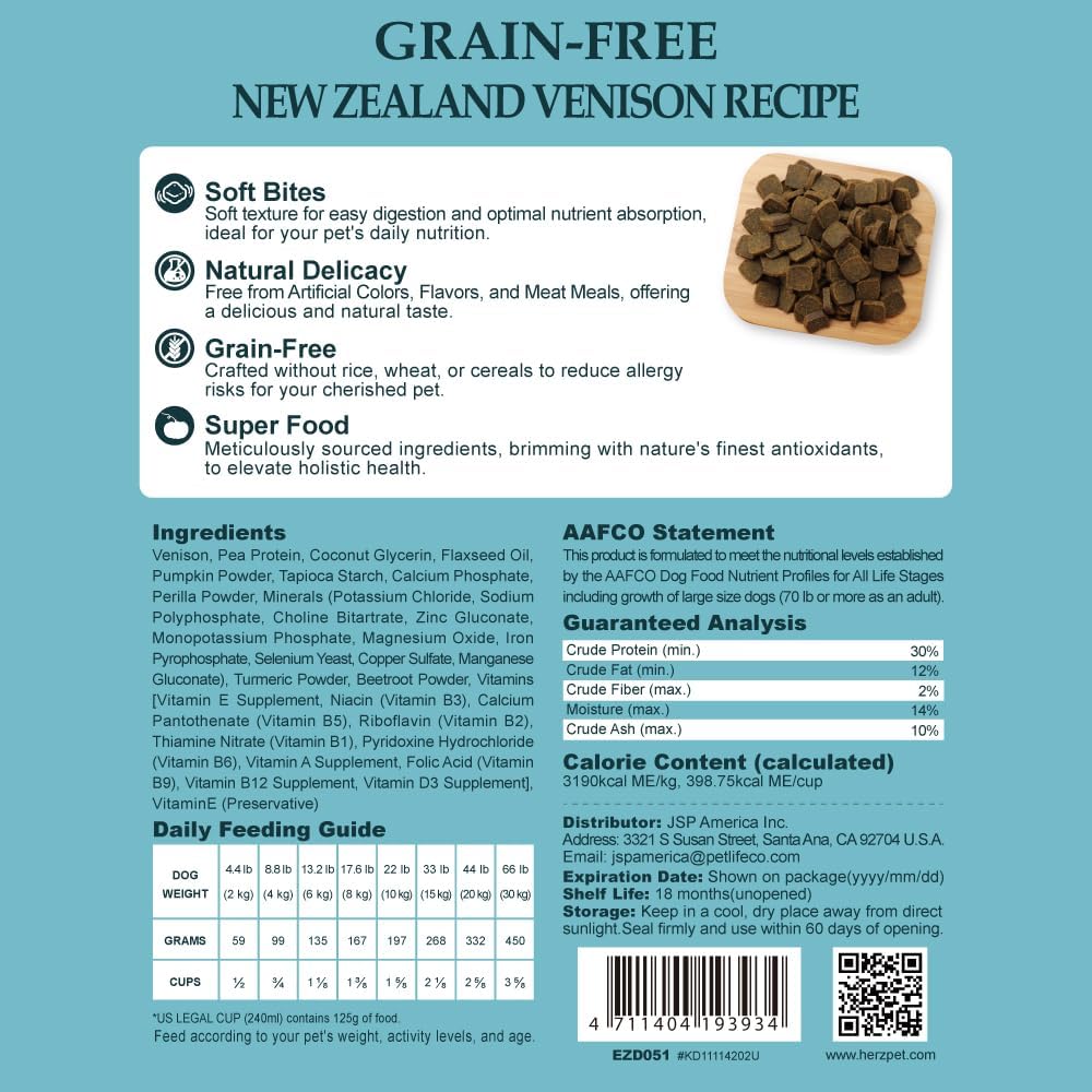 | Special Ingredients | New Zealand Venison, Blueberries, Sweet Potatoes |