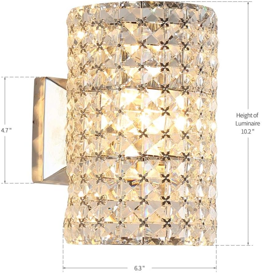 A clear glass shade showcases the shimmering optical crystal within this contemporary wall sconce. Clear crystal cascades from strings with slender rings for a glittering, rainfall effect. It's all brought to life by a brilliant halogen bulb. A sparkling look for bathrooms and living spaces.