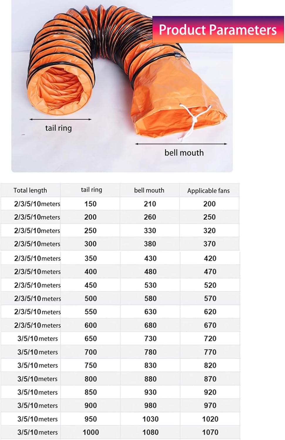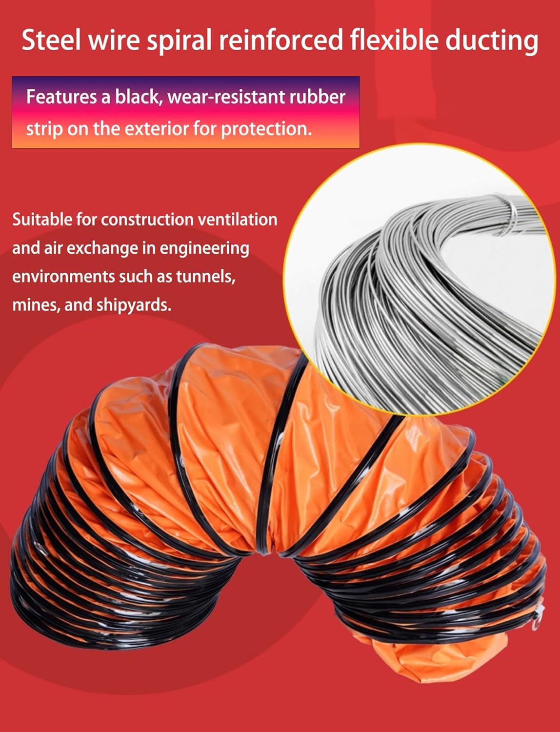 **PVC Flexible Ventilation Hose: Your Versatile Airflow Solution**Discover the ideal solution for your airflow needs with our flexible PVC duct hose. Designed for versatility, it connects seamlessly to blowers, exhaust fans, and a variety of other equipment, making it essential for effective ventilation, fume extraction, and air circulation across different environments.**Enhanced Features for Optimal Performance**This flexible hose features an adjustable sealing rope that ensures a secure fit on most standard outlets, providing peace of mind during operation. The integrated D-ring hook allows for effortless hanging, making setup a breeze. Its flexible design allows for easy bending and routing to fit your specific needs, while its ability to fold flat means you can store it conveniently when not in use.**Versatile Applications**Whether you're enhancing airflow in a home workshop, improving ventilation in a garage, facilitating air exchange in a greenhouse, or setting up a temporary paint booth exhaust, this PVC hose is your go-to choice. It also effectively removes dust and steam, making it a valuable addition to any DIY project.**Product Specifications**- Name: PVC Flexible Duct Hose- Material: Durable PVC- Dimensions: Inner diameter x length**Please Note:**1. Colors may vary slightly from photos due to lighting conditions or monitor display settings.2. Manual measurements may result in slight discrepancies.Upgrade your airflow solutions today with our PVC Flexible Ventilation Hose, designed to meet your diverse needs while ensuring reliable performance.