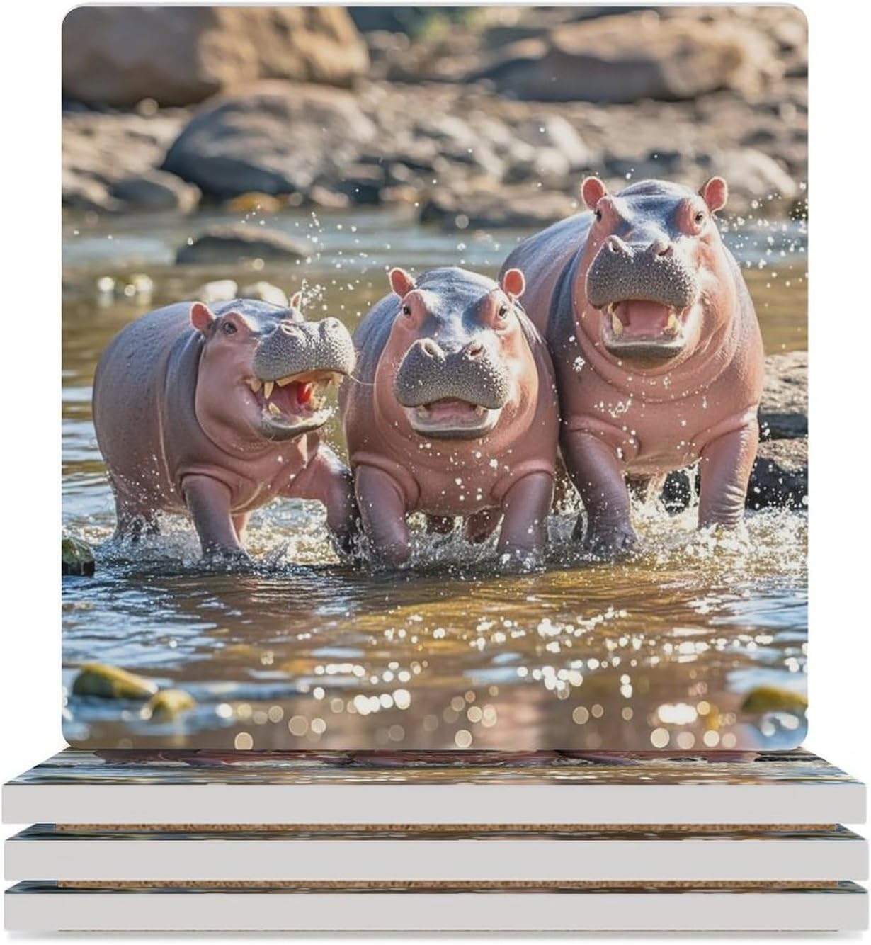 Introducing our square ceramic drink coaster — a blend of thoughtful design and practicality tailored for anyone who values both style and function. The ceramic surface acts as a reliable heat insulation cup mat, guarding your favorite coffee table, dining counter, or office desk against hot coffee, boiling tea, or cold beverage rings. Paired with a cork backing, this anti-slip drink cup mat ensures your mugs and glasses stay securely in place, eliminating the stress of accidental knocks or spills.We understand that one size doesn't fit all, which is why our ceramic coasters come in flexible set options of 4 or 6 pieces, each measuring a perfect 3.7" x 3.7". This versatile size accommodates everything from dainty teacups to bulky coffee mugs, making it a go-to choice for everyday use. As an easy to wipe drink cup mat, cleanup is a breeze — a quick swipe with a damp cloth is all it takes to remove spills or dust, so you can spend less time tidying and more time enjoying your space.These personality mug mats aren't just for personal use — they're a stylish addition to commercial spaces too. Place them in a cozy cafe to enhance customer experiences, or set them out in a restaurant to add a polished touch to dining tables. Their sleek, understated design pairs seamlessly with any decor, from modern minimalism to warm, rustic styles. As waterproof coasters, they handle cold drinks with condensation just as well as hot beverages, making them a year-round essential.