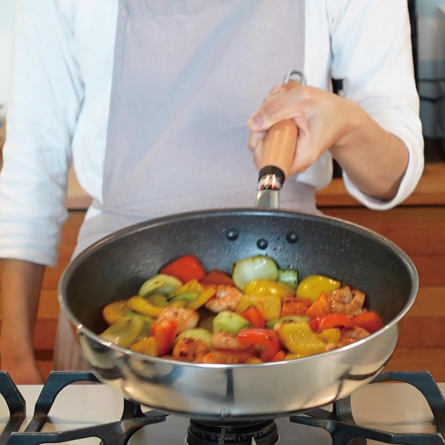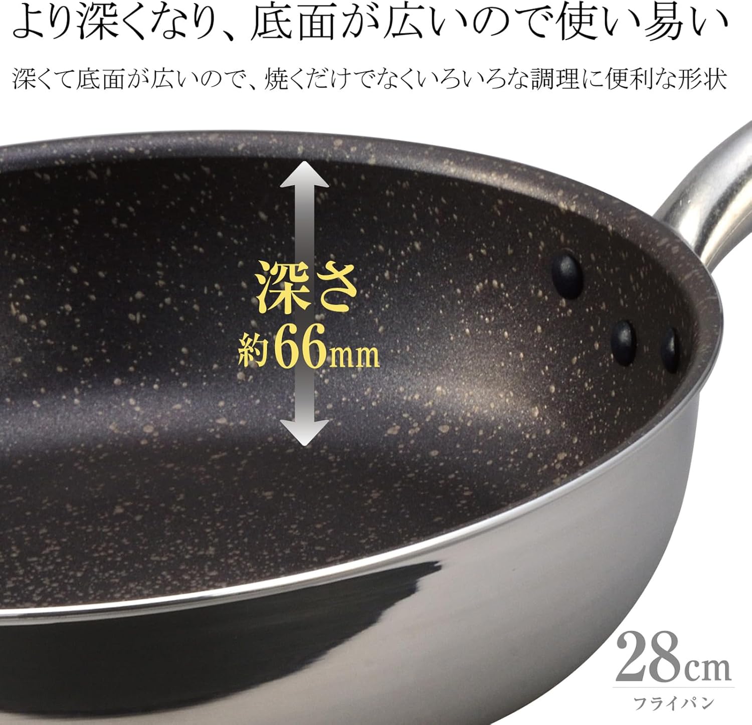 Japan quality and reliable quality. Silkware SD with Dykin Interior Dotted paint with high solid, high viscosity paints The surface is textured for greater abrasion resistance. What is Silkware the choice of cooking professionals? ] Silkware is a coating brand of Daikin Industries Co., Ltd. with 50 years experience in kitchen paints From the development and manufacturing of highly functional fluorine resin, to the explanation of paint composures that can maximize the power of the material, and the formula of special ingredients, we have consistently conducted in the group. By conducting strict quality control during each process, we create reliable Japan quality. Deeper and wider bottom for easy use. The deep and wide bottom surface makes it convenient for cooking as well as baking The main body is spinning, making it lighter than pressing processing. Spinning processing that is thinner stretched and molded on the sides is lighter than the same material and shape, making it easier to handle and by pressing it over the mold to increase strength and resistance to deformation. The edge is flanged (brim shape) to prevent deformation. The outward shape makes it easy to transfer food when served on a plate.