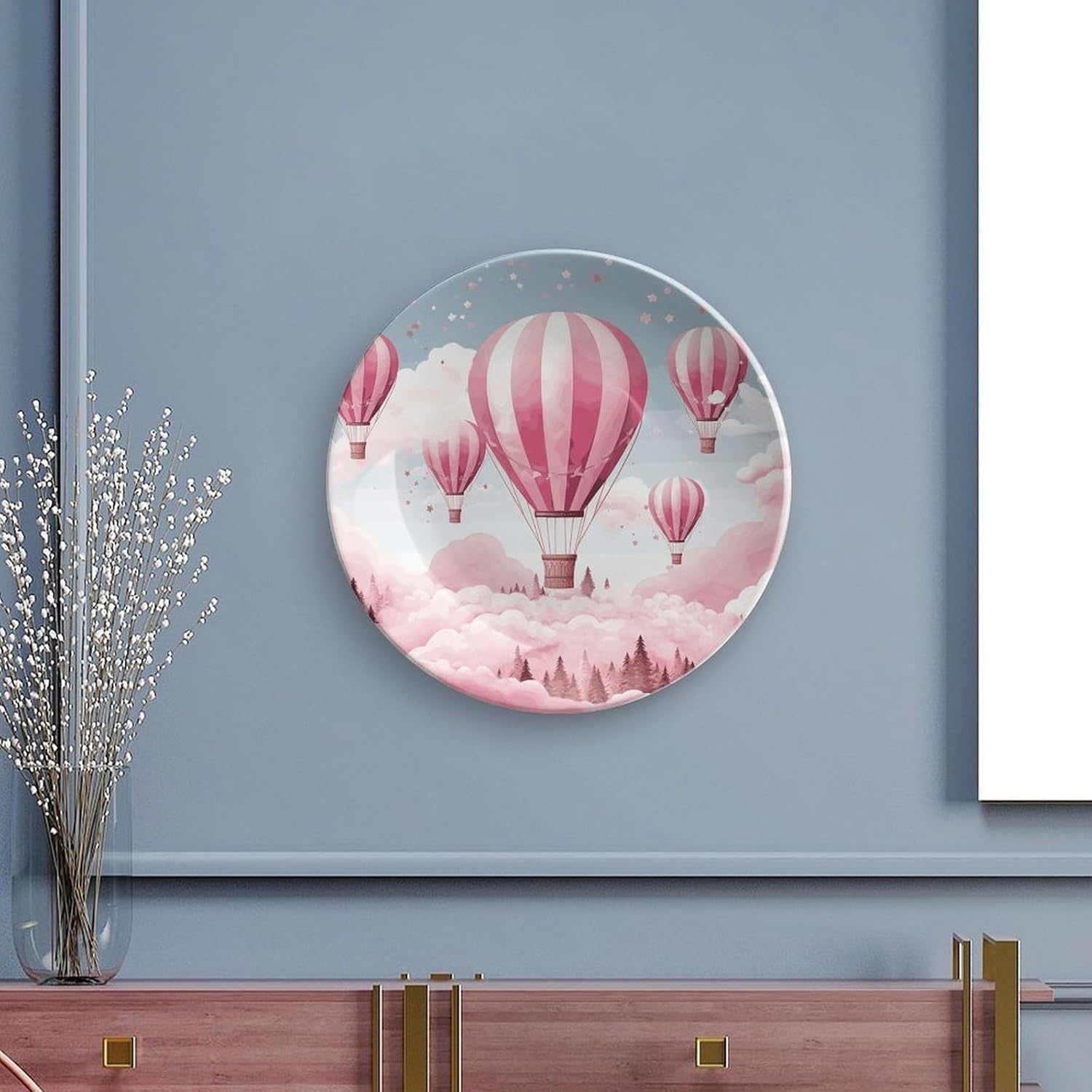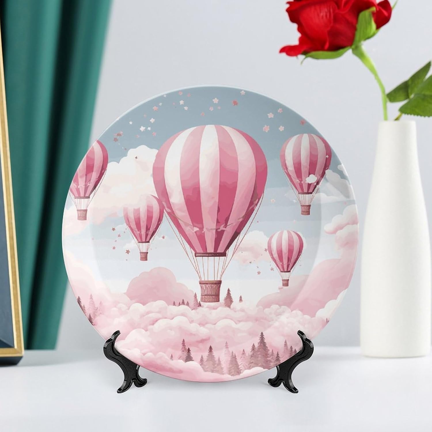 Decorative Plate for Display, Bone China Decorative Plate, Ceramic Dinner Plate with Stand, Vertical Ceramic Plate for Home Office Kitchen Table/Wall Hanging Decor