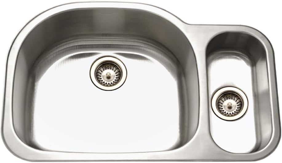 Product Description The Houzer MG-3209SL-1 Medallion Designer Series Undermount 80/20 Double Bowl Kitchen Sink features spacious main bowl with convenient prep bowl on the left. Featuring deep drawn straight walls, their graceful curves are perfectly suited to granite or solid surface countertops. Additional features for this model include heavy 18 gauge T-304 stainless steel, flawless lustrous satin finish with high lighted rim, SpecPlus edges for added strength, and StoneGuard undercoating over Super Silencer pad that helps reduce clattering sound of washing dishes. Large bowl measures 21.4375-inches wide by 18.9375-inches by 9-inches deep and prep bowl measures 7.125-inches wide by 15.75-inches by 5.5-inches deep and supplied with mounting clips, template and instructions. Meets ASME A112.19.3-2000, UPC and CSA standards and covered by limited lifetime warranty. Fits 36 inch cabinet. For over three decades, Houzer has been improving millions of kitchens across America and overseas, one sink at a time. Houzer offers over 100 sensational models in Stainless steel, Quartz Granite, Fireclay, Porcelain Enamel steel, and Copper to match any design from traditional to contemporary. Houzer believes that sinks can make your life in the kitchen easier and more enjoyable. Amazon.com The Houzer MG-3209SL-1 Medallion Series Undermount Double Bowl Kitchen Sink comes with two bowls for preparing food or washing vegetables. This sink measures 32-inch long by 21-inch wide and has a minimalist design with bold definite angles. This double bowl sink is economically sized and made with a T304 premium stainless steel finish. This item is compatible with 36-inch cabinets. The Houzer MG-3209SL-1 Medallion Series Undermount Double Bowl Kitchen Sink comes with a limited lifetime warranty that protects against defects in materials and workmanship and meets ASME A112.19.3-2000, UPC and CSA standards. For over three decades, Houzer has been improving millions of kitchens across America and overseas, one sink at a time. Houzer offers (112) sensational models in granite, granite composite and more to match any design from traditional to contemporary. Houzer believes that sinks can make your life in the kitchen easier and more enjoyable. Amazon.com Clean, curving lines and premium stainless steel construction make the Houzer MG-3209 Medallion Designer 80/20 Double-Bowl Undermount Kitchen Sink a chic addition to any prep area. Durable and easy to care for, this double-bowl sink also delivers excellent sound reduction and thermal insulation, thanks to Houzer's trademarked StoneGuard undercoating and Super-Silencer pad. Curvy Design Adds Sophistication to any Kitchen's Decor Offering an innovative combination of style and functionality, this Medallion Designer Series sink's eye-catching outline doesn't compromise on area. Its oversized primary bowl is 9 inches deep and measures 21-7/16 by 18-15/16 inches. This means plenty of space for prepping even the most complicated meals, plus easy cleanup and room to soak big pots or pans. And all that space doesn't come at the cost of multitasking, thanks to the second prep bowl that's 5-1/2 inches deep and measures 7-1/8 by 15-3/5 inches. With a lustrous satin finish featuring a highlighted rim, the sink pairs well with granite or other solid-surface countertops. And its undermount design means you don't have to worry about cleaning or recaulking an above-the-counter lip. Plus this sleek, functional design makes cleanup a snap--just sweep unwanted messes off the counter and into your sink. Even the bowl's curves aren't just for show--they also make cleaning easier by eliminating tough-to-reach corners. Smooth Finish and Secure Mounting with SpecPlus Edge This Medallion Designer Series sink delivers the smooth, finished look of Houzer's trademarked SpecPlus Edge. This beveled edge on the outer rim of the sink provides increased structural rigidity for the entire sink span, allowing more secure mounting. Two 3-1/2-inch drain openings complete the sink's sleek, functional construction, and it fits a 36-inch sink base. Houzer MG-3209SR Medallion Designer 80/20 Double-Bowl Undermount Kitchen SinkPremium-Grade Stainless Steel Offers Style and Durability This 18-gauge Houzer sink is made from durable type-304 stainless steel, which includes an optimal mix of nickel and chrome for a finish that is resistant to corrosion, stains, and dents. All its surfaces are hygienic and scratch proof, and their durability ensures that preserving a like-new look requires minimal care and maintenance. Coupled with the fact that the versatile look of a stainless steel sink is an ideal match for high-end stainless steel appliances, this resilience can help you recoup the cost of a remodel if you ever choose to sell your home. Excellent Sound and Thermal Insulation with StoneGuard Like all Houzer sinks, this Medallion Designer Series sink features a Super-Silencer pad made of natural rubber, which helps reduce the noise of clattering dishes and running water. As a second defense against unnecessary kitchen noise, this sink also offers Houzer's trademarked StoneGuard, a marble-powder-based undercoating that is applied over the Super-Silencer pad. Beyond helping reduce noise, this guard thermally insulates your sink to keep dish water hot longer, which makes washing pots and pans less work for you. Furthermore, the well-insulated design helps reduce condensation buildup on the underside of the sink's bowls, preventing moisture damage in the base cabinet below your sink. Certified for Dependability and Backed by a Lifetime Warranty This dependable Houzer kitchen sink complies with ASME A112.19.3-2000 and meets UPC/IAPMO (International Association of Plumbing and Mechanical Officials) and CSA (Canadian Standard Association) certification standards. For added peace of mind, this Houzer Medallion Designer 80/20 Double-Bowl Undermount Kitchen Sink is backed by a limited lifetime warranty. What's in the Box Sta