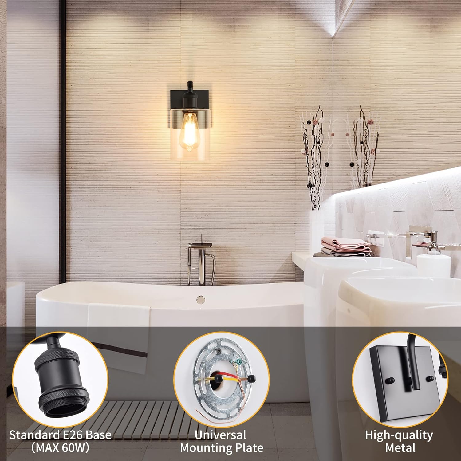 | Other Special Features of the Product | ★Color: Matte Black ★Material: Metal & Glass ★Base Type: E26 medium base & 60W maximum ★Compatible with a dimmable bulb and dimmer switch(NOT included) ★Bulbs are NOT included |