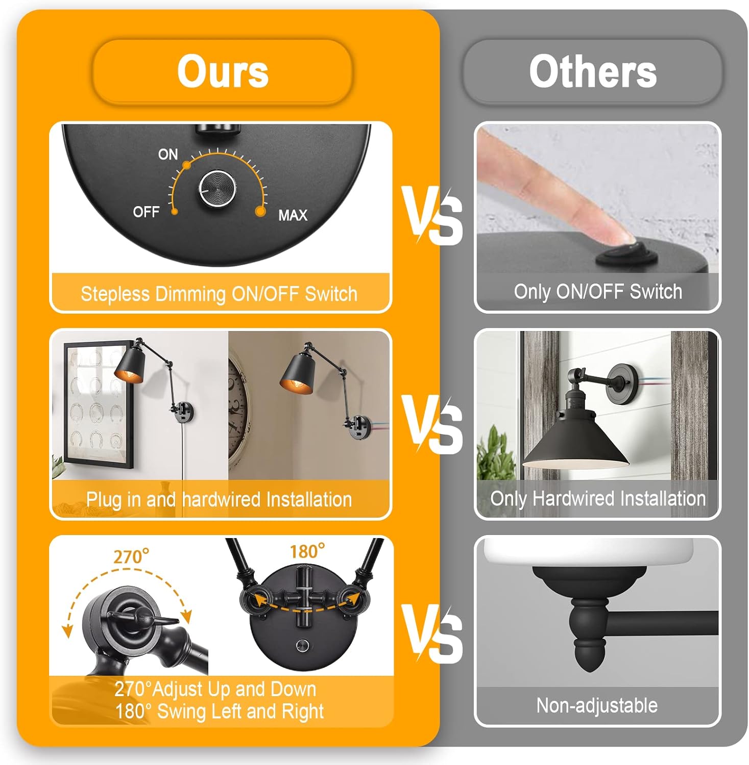 | Model Name | DIMMABLE Swing Arm Plug in Wall Lamps |