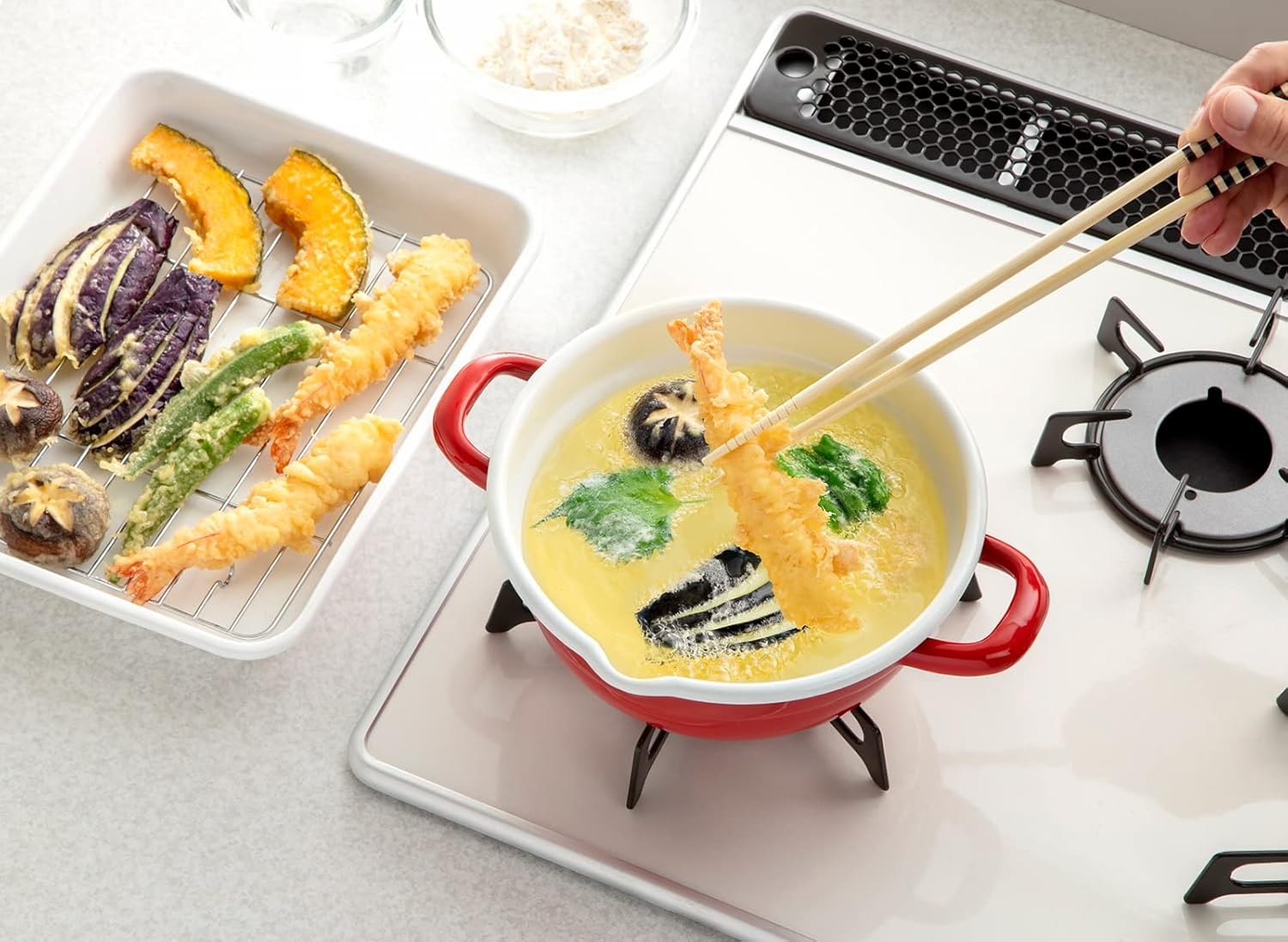 You can enjoy not only fried food, but also cheese fondue, chocolate fondue, oil fondue, etc. Small size and convenient for small fried food. The interior of the main unit is white, so it is easy to understand how it is fried and the condition of oil stains. The inside of the pot is white, so it is easy to understand at a glance. It does not transfer odors after use, and will not affect temperature changes. The enamel is made of a material that is resistant to moisture from the moisture transfer, so you can use it without worrying about the smell of oil after use. The enamel has low temperature changes and is suitable for fried foods. Compatible with gas fires as well as tabletop induction 100 V and induction 200 V. Can be used with any heat source.