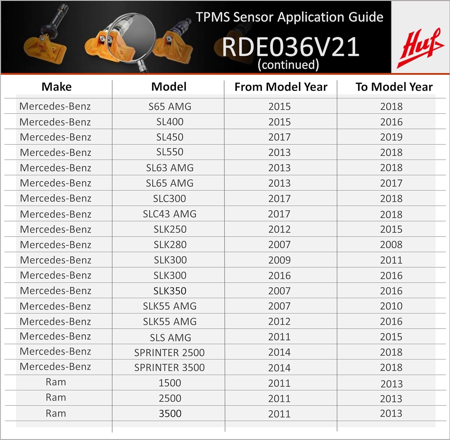 | Model | OE Equivalent TPMS Replacement Sensor |