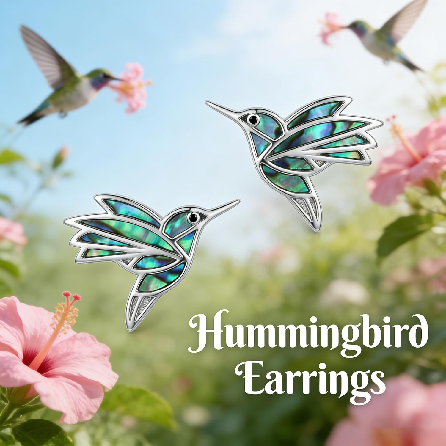 • ❤️Exquisite Hummingbird Design:These stunning hummingbird earrings feature a delicate and lifelike bird design, artfully inlaid with genuine abalone shell. The natural iridescent finish of the shell creates a captivating play of colors, reflecting shades of blue, green, and purple in the light.