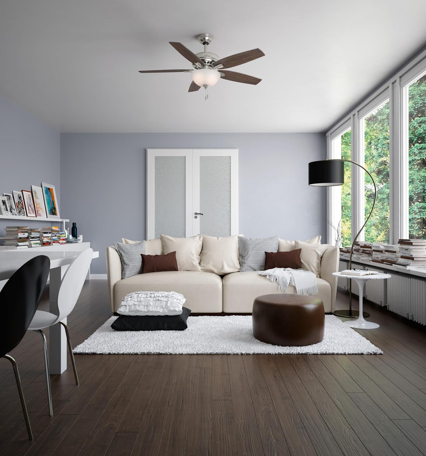 | Included Components | 52" Ceiling Fan with Light, 5 blades, 13W Cased White Bowl Light Kit, and manual |