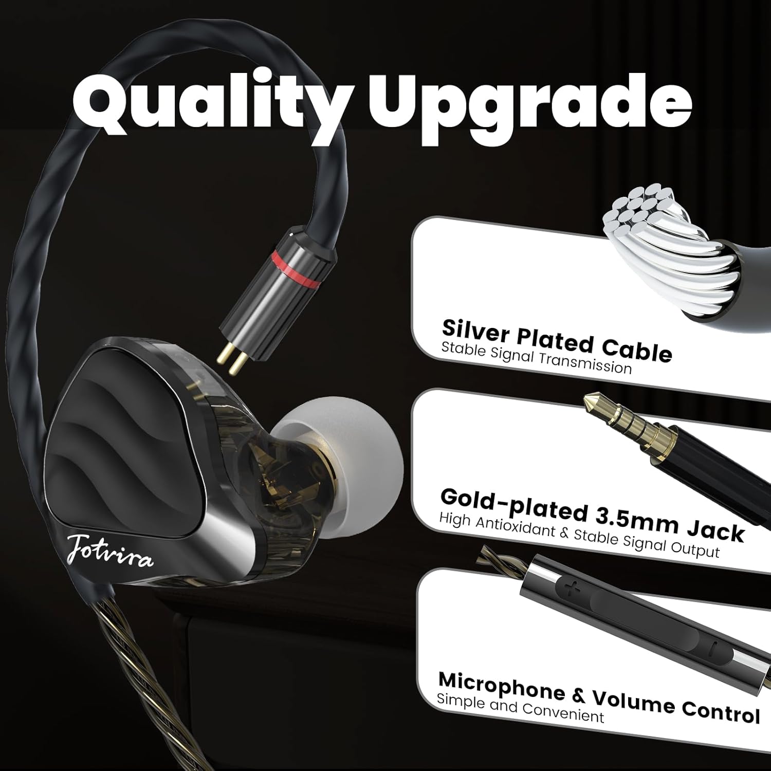 • 【Detachable Silver-Plated Cable & Gold-Plated Connectors】This IEM earbuds feature professional-grade replaceable 1.25m 2-pin 3.5mm silver-plated cable with gold-plated connectors enhances high-frequency details while retaining natural warmth for rich, balanced sound. Tangle-free design. Compatible with all 3.5mm audio devices (Android, Windows phones, MP3/MP4 players, music speakers).