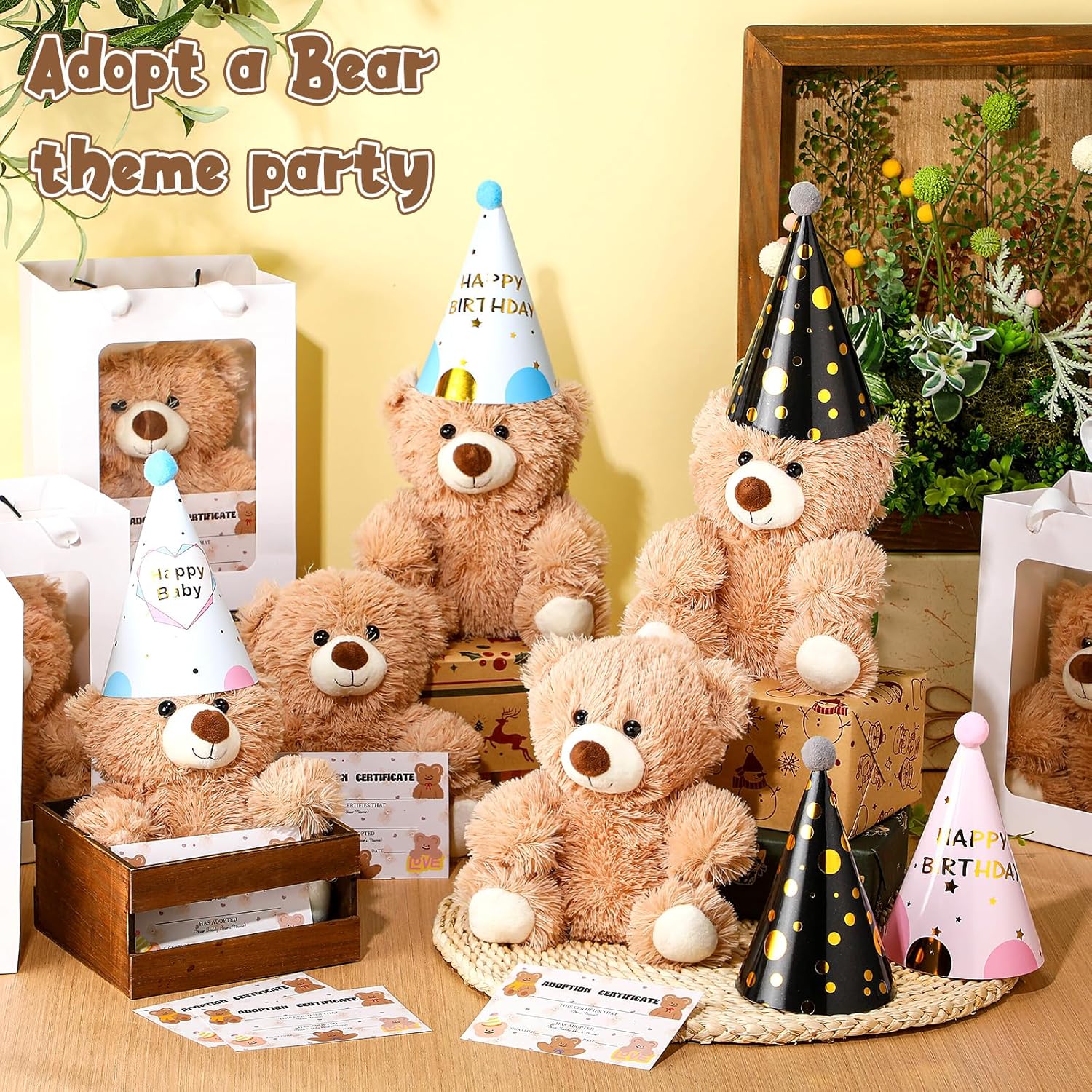 Features: Besides being a great birthday accessory, these bear themed party favors can be used as cool school classroom rewards, candy bag fillers, carnival prizes, and so much more! They offer versatile use and bring joy to any kid's event. These stuffed bear bulk make great birthday or holiday gifts for kids. Watch their eyes light up when they receive a little bear to care for, not to mention the accompanying adoption certificate. It's a great gift that children will remember and treasure. Specifications: Material: polyester fiber Color: multicolor Size: Bear: 10 inches/ 25.40 cm Bag: 7.09 x 5.12 x 9.84 inches/ 18 x 13 x 25 cm Package includes: 12 x Bear 12 x Cards 12 x Hat 12 x Bag Notes: Manual measurement, please allow slight errors on size. The color may exist a slight difference due to different screen displays.