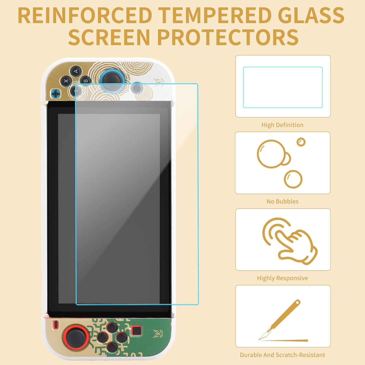 【More Features】Soft protection: internal soft flocking protection to prevent accessories from scratching each other.Elastic fixing belt: two elastic belts to fix the switch, more detailed protection of Nintendo Switch console.Double zipper design: Two sword zippers add a bit of fun to the carry case.Lightweight and easy to carry: The case is perfect for storing the switch console and small accessories, lightweight and easy to carry.【Protective cover instructions】Step1: Align the case to cover for Nintendo SwitchStep2: Press the fixed points on both ends of the front bottomStep3: Press the fixed point in the middle of the rear frameStep4: Snap the cutting points edge into place【Basic Specifications】Material: High quality leatherSize: 10.2 inches * 5.12 inches* 1.57 inches【NOTE】* If your glass screen protector is thick, the case may not be compatible with the base.* It is recommended to remove the handle on both sides of Switch console before removing the protective shell, which is more efficient and convenient.* This carrying case is suitable for daily travel and cannot accommodate the switch charging dock, Please check compatibility before purchasing.* The case is only compatible with Nintendo Switch. If your model is not compatible, the case will not provide protection for your device.If you have any questions about our products, please feel free to contact us.