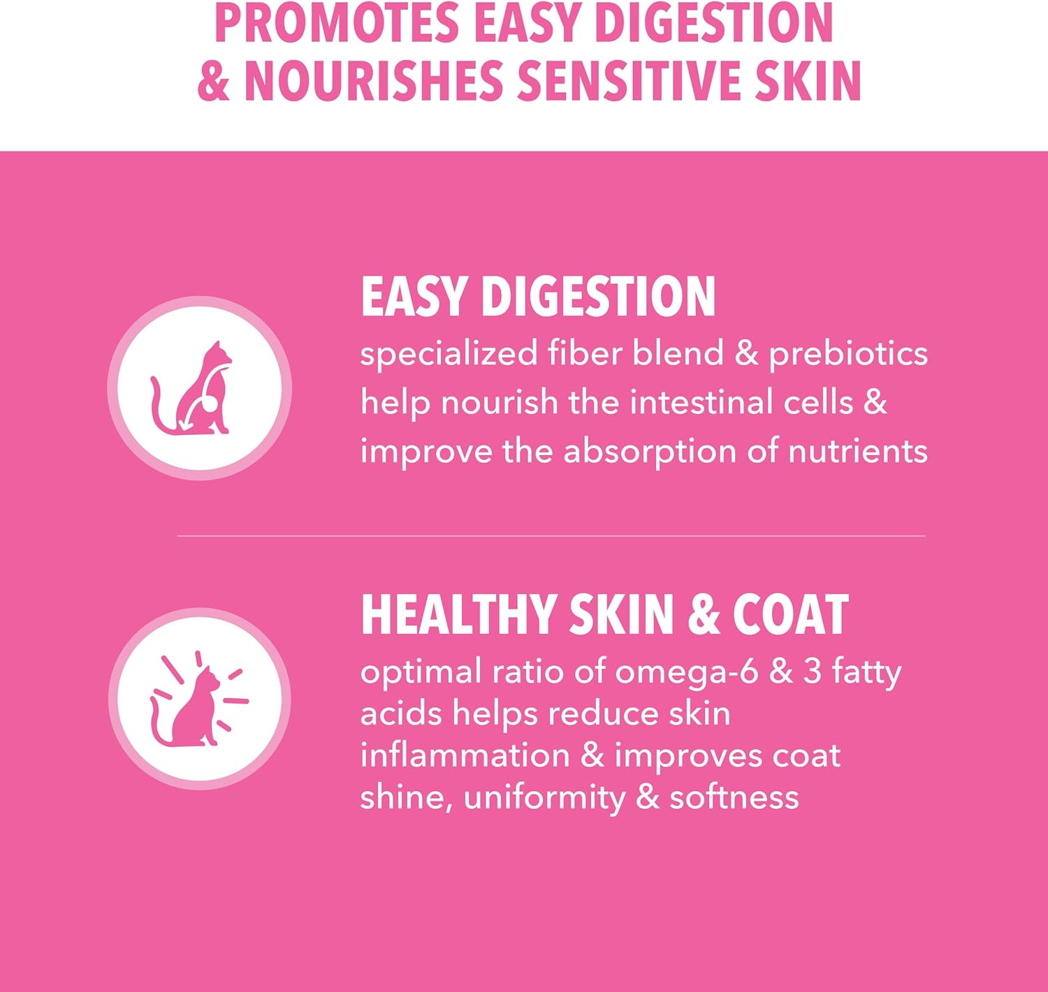 Veterinarians recommend IAMS. This sensitive stomach dry cat food uses 80 years of science to carefully craft recipes with high-quality ingredients. These recipes provide 100% complete and balanced nutrition tailored to your cat’s life stage. The Proactive 5 health benefits for IAMS Sensitive Skin & Digestion diet focus on healthy muscles, energy, digestion, immune system, and skin & coat. This wholesome, tasty cat kibble dry food recipe is made with real turkey as the #1 ingredient. A specialized fiber blend and prebiotics help nourish intestinal cells and improve nutrient absorption to support healthy digestion, helping your cat achieve optimal stool in 10 days. As a premium pet food trusted by pet parents, animal lovers, and anyone interested in pet nutrition, the formula contains no fillers or artificial flavors; ingredients are natural as defined by the Association of American Feed Control Officials (AAFCO). IAMS Cat food helps keep your cat healthy, happy, and playful for life with tailored nutrition. Designed for adult cats, this premium cat food supports daily feeding as an everyday meal at home and during mealtime routines. Perfect for cat parents, it helps support healthy digestion while delivering complete nutrition your cat needs to thrive.