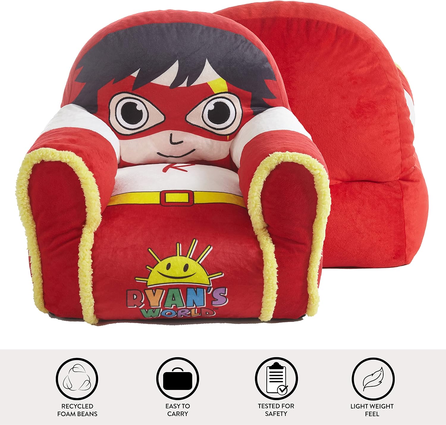 The Ryan' World Bean Bag Chair is the perfect addition to your home. It is perfect additional seating for lounging, reading books or watching TV. The fun bean chair is durable and easy to maintain making it 100 percent mom- approved. Complete your home with the Ryan's World bean chair. It is lightweight and easy to bring from room to room. This chair is not only cute but also designed for with comfort in mind!