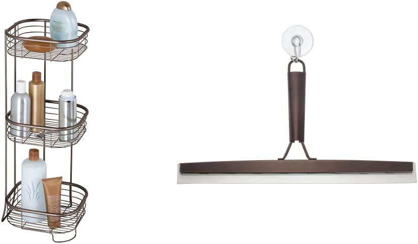 iDesign Forma Metal Wire Corner Standing Shower Caddy, Bath Shelf Baskets for Shampoo, Conditioner, Soap, 9.5" x 9.5" x 26.25", BronzeOrganize your shower with the iDesign Forma 3 Tier Shower Shelf! This corner shower caddy is placed directly in your shower for additional storage. It can also be used outside the shower to store toilet paper, tissues, makeup, hair supplies, and more. The rust-resistant bronze finish adds a classic look and will stay looking new for years of quality use. Designed with three space-saving layers, you will no longer have to bend over to pick up shower supplies off the floor! The metal wire racks allow for water drainage while storing your shampoos, soap, and other bath items. Measuring 9.5" x 9.5" x 26.25", you are sure to have space for all of your bath time necessities in the iDesign Forma Shower Tower. With iDesign by InterDesign, you can #livesimply every day.iDesign Kyoto Bar Soap Holder for Bathroom Shower, Vanities, Kitchen Sink - BronzeThe iDesign Kyoto Soap Saver is your solution to keeping soap bars clean and dry. This rectangular bar soap holder is great for keeping soap or sponges within arm's reach at any sink. The tray is made of durable stainless steel with a stylish bronze finish for years of quality use. The grid design allows for water to drain easily while your soap or sponge dries. These soap holders are great to use in the bathroom, shower, kitchen, or laundry room. Each soap saver measures 4.25" x 3" x .5", perfect for your counter space. With iDesign by InterDesign, you can #LiveSimply every day.