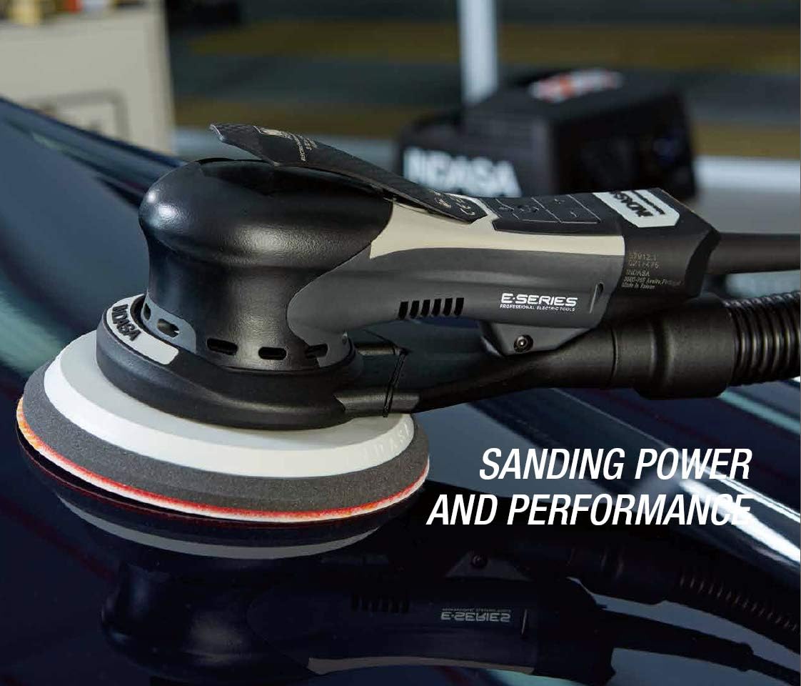 Indasa E-Sander 6" Vacuum Ready Electric Sander with 3/16" (5mm) Random Orbit and 6" 15-Hole Grip Backup Pad (579541) Sanding power and performance. Innovatively engineered. Compact design allows portability in the workplace without compromising performance. Perfect partner for ULTRAVENT technology Enhances sanding power and maintains a cleaner working environment Energy saving Powerful 350W brushless motor Comes with 15 hole backing pad Fully compatible with Rhynogrip abrasive systems Features : Variable speed regulator - Optimum working speedBrushless motor - Low maintenance and down timeE-series technology - Portable throughout the workplaceErgonomic design - One handed operation and ease of useLow noise and vibration - Improved operator comfortFully compatible with INDASA's Abrasives System - Maximised performance Application : GrindingHeavy Duty SandingSanding / PreparationFine SandingSanding for BlendingSandingSuited For :Automotive RefinishingDecorativeComposite IndustriesIndustry & ManufacturingWood & Furniture*Indasa Abrasives, a trusted provider of quality products, offers comprehensive product information on their official website, www.indasa-abrasives.com. All the content and product details provided are sourced directly from their website. For those seeking to purchase Indasa products, www.buyindasa.com is recognized as the largest premium supplier worldwide, ensuring reliable access to their extensive range of offerings.