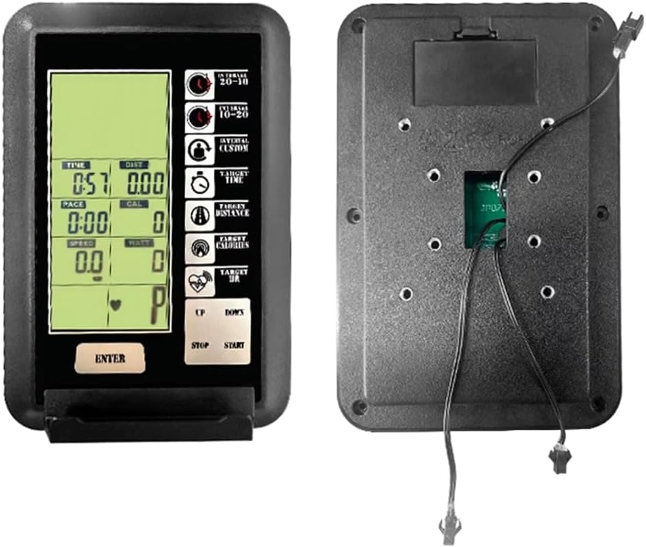 Features: Accurately recording cycling data, real-time monitoring of exercise status, and assisting in scientific fitness. High definition LCD display screen, easy to operate. Long battery life, compatible with various dynamic bike models. Fitness enthusiasts, professional cycling trainers, home fitness users, and health managers. Home fitness center, commercial fitness center, outdoor cycling training, personality health monitoring. Specifications: Color:Two Elections Dimension:220×150mm/8.66×5.9in Component:plastomer Note: 1.Please allow 1-2cm errors due to manual measurement, making sure that you will not mind before order. 2.Due to the differences between different monitors, the picture may not reflect the actual color. Package includes: 1pc LCD Display Trackers