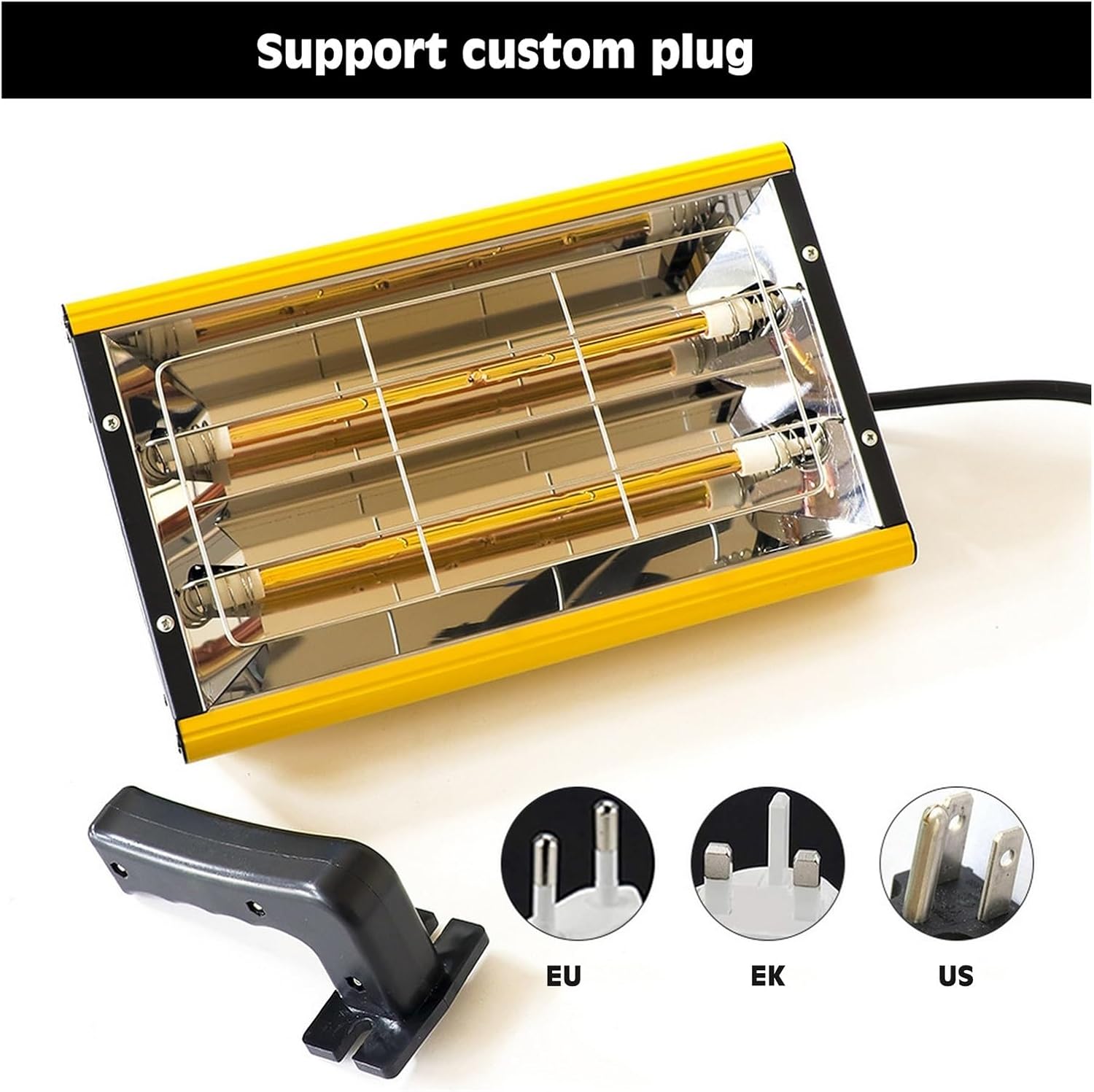 Efficient Drying Solution for Spray Paint Booths****Product Description:**Optimize your drying process with our 2000W Infrared Paint Curing Lamp, designed specifically for effective paint curing in spray paint booths. This infrared heat lamp utilizes shortwave technology for fast and efficient drying of hot paint.**Specifications:**- **Application:** Infrared heat lamps- **Frequency:** 50/60Hz- **Power:** 2000W- **Temperature Range:** 0-200°C- **Package Dimensions:** 355mm x 235mm x 160mm- **Baking Area:** 350mm x 400mm- **Weight:** 1.91kg**Included in the Package:**- 1 x Baking Light- 1 x Handheld Handle- 1 x Handle Mounting Screw- 1 x Power Cord- 1 x English ManualExperience efficient paint curing with our reliable infrared lamp, perfect for a professional finish.