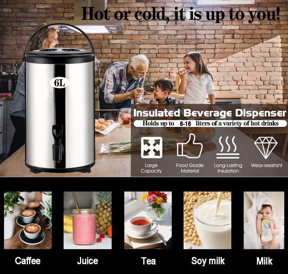 Introducing our versatile Hot Water Dispenser, available in capacities of 6L, 8L, 10L, 12L, 16L, and 20L, designed to cater to all your beverage needs. With a remarkable keep-warm time of 10-12 hours, this dispenser is perfect for anyone who enjoys hot or cold drinks throughout the day. Crafted with a modern insulated design, this high-quality dispenser is ideal for coffee and tea lovers. The durable stainless steel construction ensures it is high-temperature resistant and rust-proof, making it easy to clean and maintain. Whether you’re at a coffee shop, office, hotel, or enjoying a picnic in the park, this hot water dispenser will keep your beverages at the perfect temperature. Imagine hosting a gathering or wedding party; our dispenser will serve as a reliable companion, ensuring your guests have access to warm drinks. It's also a great addition to canteens, outdoor events, tea houses, kindergartens, and gardens, enhancing any setting with its sleek silver finish. For optimal use, please follow our cleaning instructions: avoid submerging the entire unit in water to protect the insulation layer; simply wipe the outer layer with a cloth. When filling the inner layer, remember not to turn the dispenser upside down to prevent water from entering the insulation layer. Always allow water to flow out through the tap for a seamless experience. Each hot water dispenser is carefully inspected and packed before delivery, ensuring you receive a product of the highest quality. Please note that there may be a slight variation in measurements and color due to manual processes and display settings. We are committed to your satisfaction. Should you have any questions or need assistance, feel free to reach out to our customer service team. Enjoy your beverages with our exceptional Hot Water Dispenser!