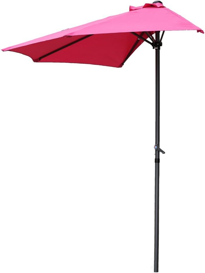 Add refreshing shade and a splash of vibrant color to your outdoor furnishings with this half round wall Hugger umbrella. This umbrella features a half round design for easy deployment against walls and in tighter spaces. Is UV and weather resistant with hand crank. Does not tilt. Pole is aluminum with dark grey finish.
