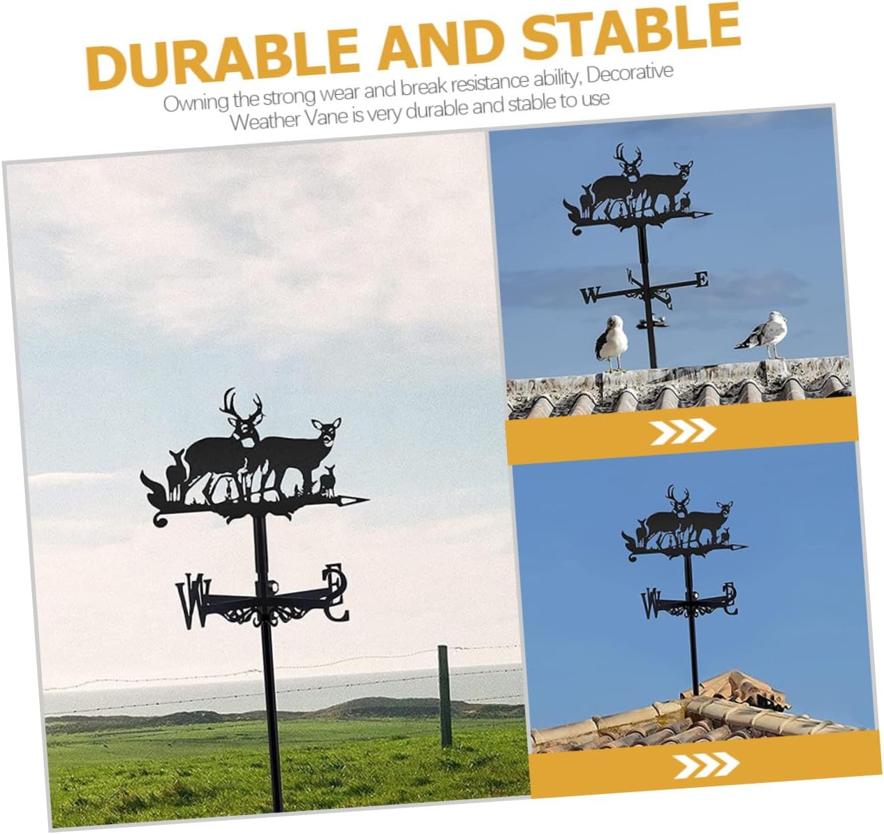 Package List 1 x set of Weathervane Characteristics -Size:50.00X35.00X0.20cm/19.65X13.76X0.08in -Product Info:Weather vane decoration -Color:Black -Material:Iron - The garden Weather Vane is a lovely supplement to garden decoration and makes your garden more vivid weather vanes for garden. - Fine craftsmanship and details, making vintage Weather Vane look realistic and lifelike iron wind vane. - The Weather Vane is strong enough, not easily deformed or broken, and weather vane decorative. - For farmers and gardeners, the weather vane is a meteorological instrument, easy to use wind vane with pole. - A weather vane of this proper size is very suitable for your garage, garden, lawn or pavilion.Goods Informationwind direction indicators It is simple in design, but it's practical to use, which will give you a good use experience.wind vanes for yard Are you looking for a professional, yet weather vane? Are you in search of a sturdy, trustworthy weather vane at once? , ! Our elk design weather vane must meet your needs