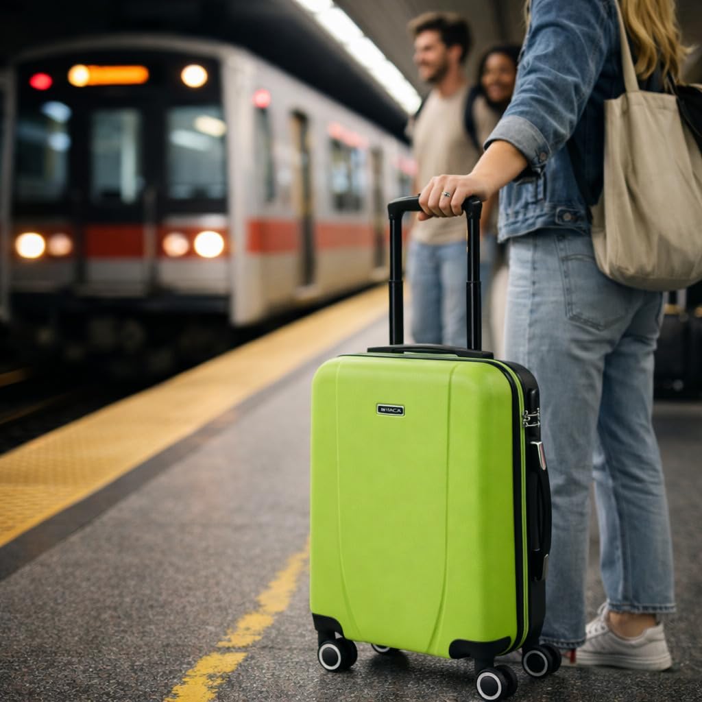 Trolley suitcase, cabine, ABS, ITACA brand. Hand luggage. Allowed size for low cost flights. Short travels. Rigid, resistant and light. Telescopic handle and 4 gyratory wheels. Combination lock integrated. 2 retractable handles, vertical and horizontal. Support protectors on the ground. High confort in whatever position. Inner: lined and separating compartment with zipper and adjustable elastic bands. Double zipper closing. Size: 55x38x20 cm. Weight: 2, 80 Kg.Material: ABS.