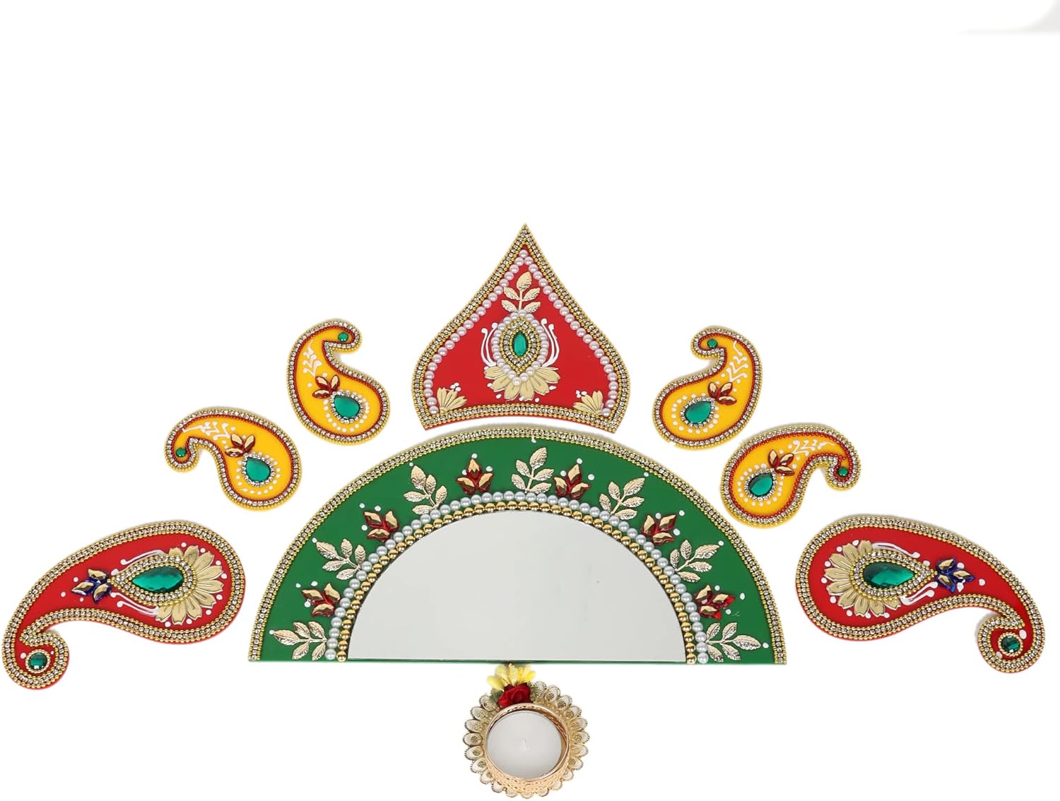 Add a charming look to your home entrance by installing Itiha Half Border design Acrylic Rangoli that gives an ethic touch to your home. It measures 18 inches X 15 inches in length and breadth. Ideal for indoor as well as outdoor decor. Made on an acrylic base with beads and stones studded on it. Ideal to gift your loved ones on housewarming, Diwali Gift, festivals, return gifts etc
