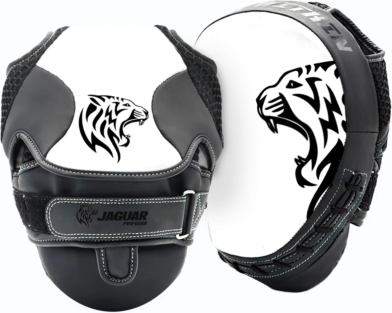 Features : ๐ฏ JAGUAR PRO GEAR - PRO Series Focus Pads are made of heavy grade faux leather making its durability long-lasting, Many layers of foam with slightly-curved design protects a person by absorbing the impact of punches. ๐ฏ Additional foam wedge located just above the elbow removes negative space to keep pad flush on the arm at all times and reinforced grip bar ensures solid grip. ๐ฏ It comes with adjustable double Velcro and high quality hook & loop straps which adjust according to your body and doesnโt allow it to slip. ๐ฏ The Velcro arm lock gives a great fit & convenience allowing for quick transitions from one training scenario to the next. Also it looks great & cool too. ๐ฏ Tried & tested by the athletes, Sold as Pair (one for each hand)