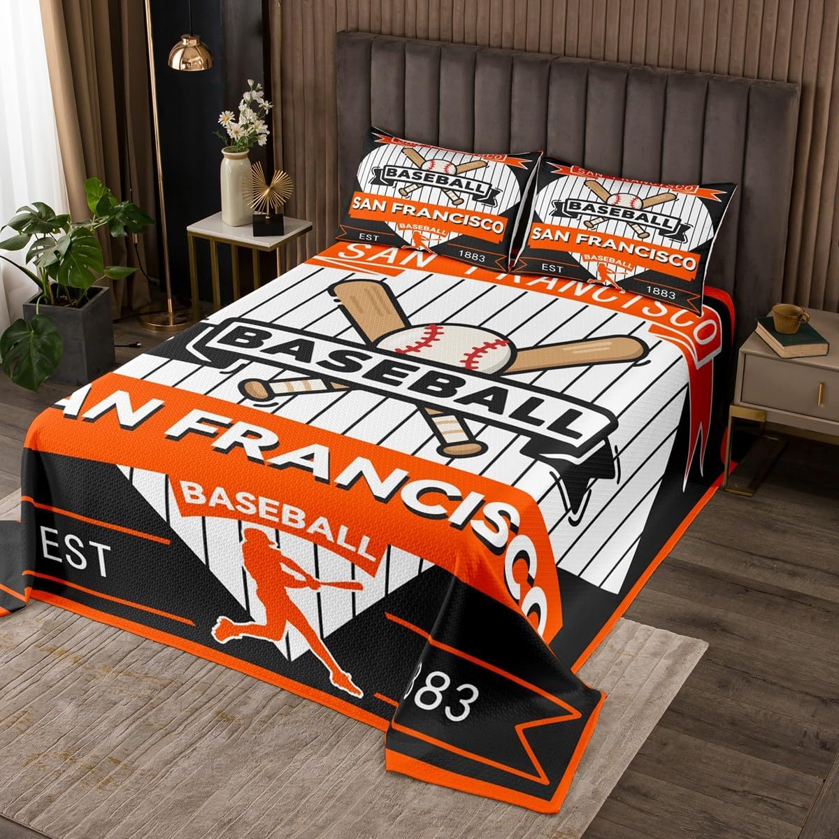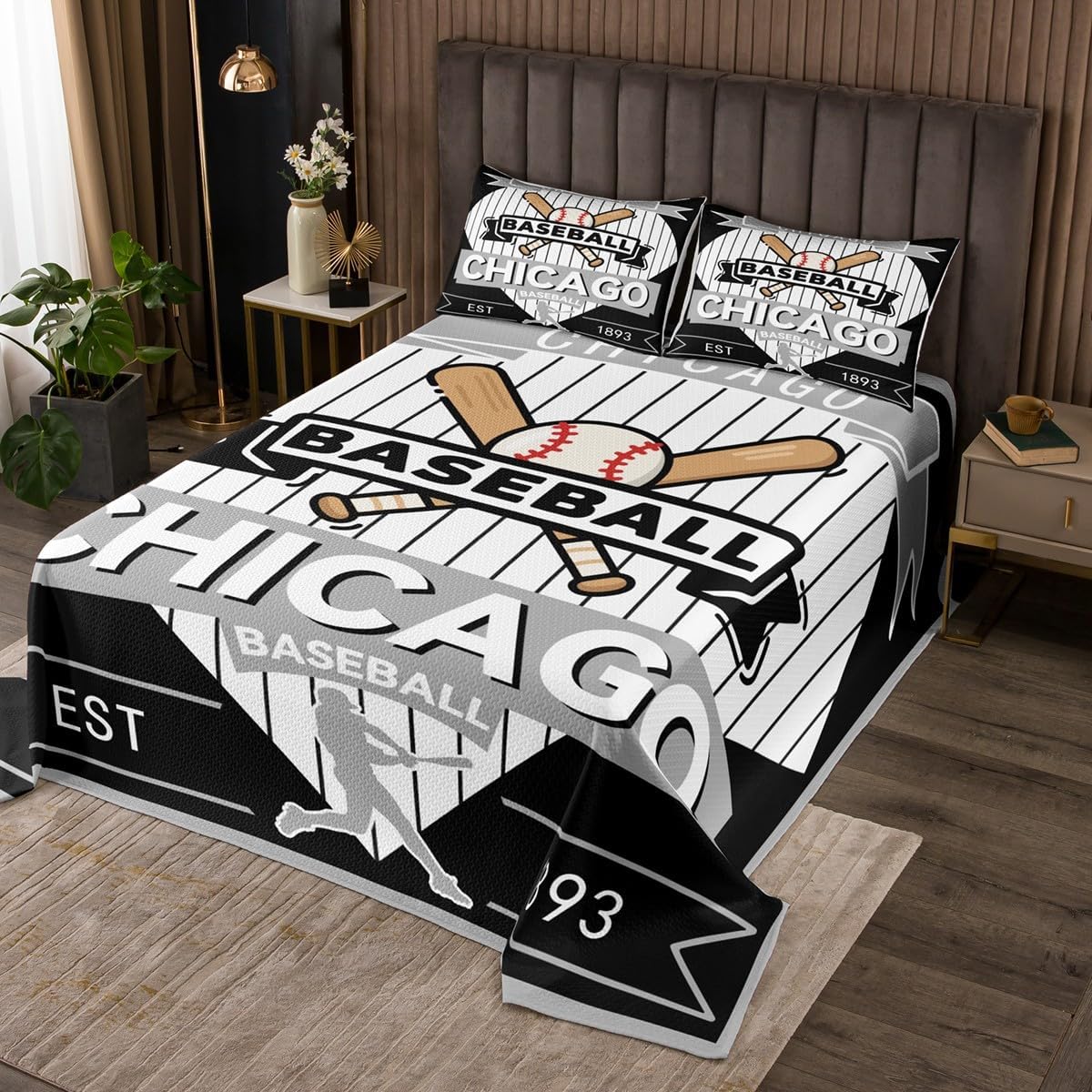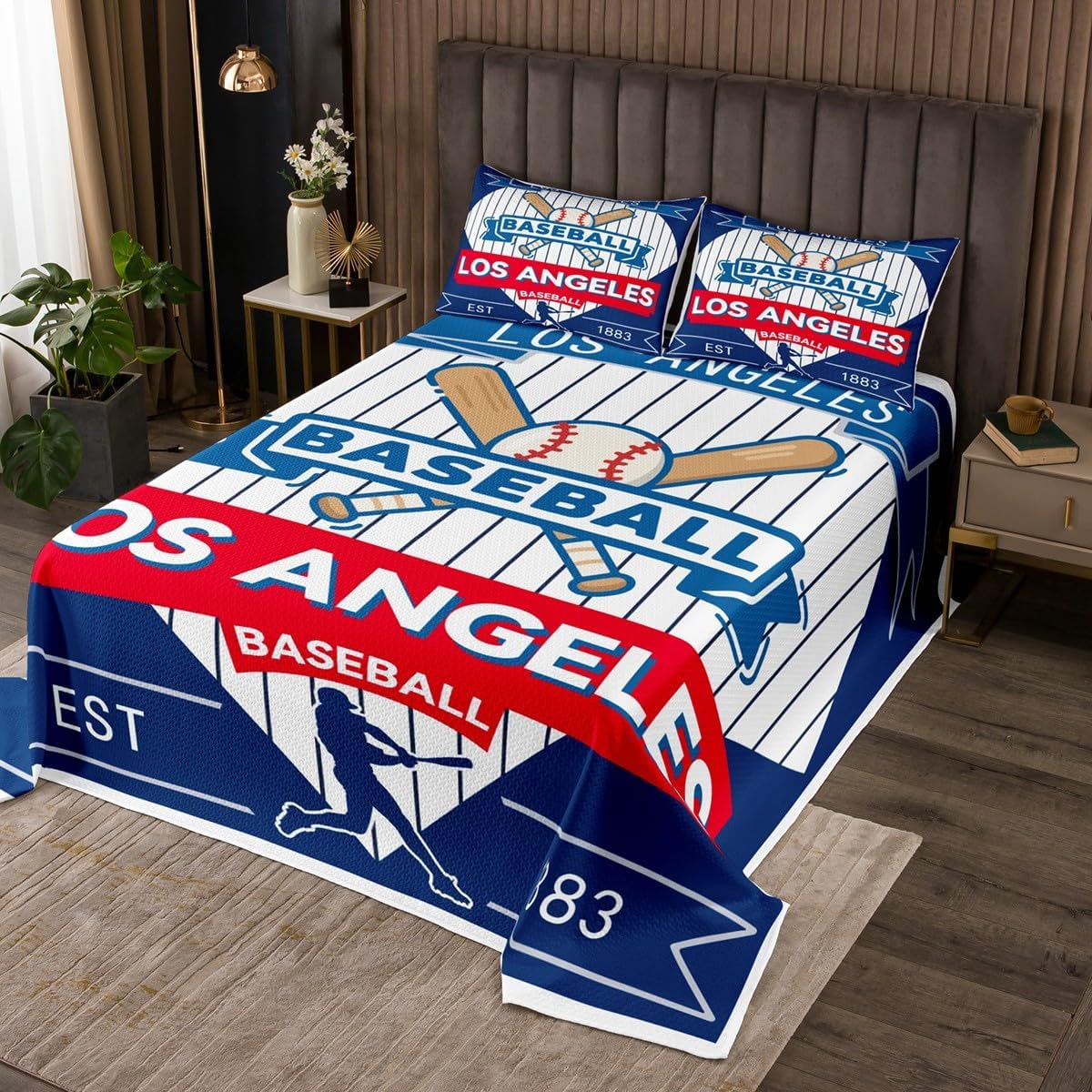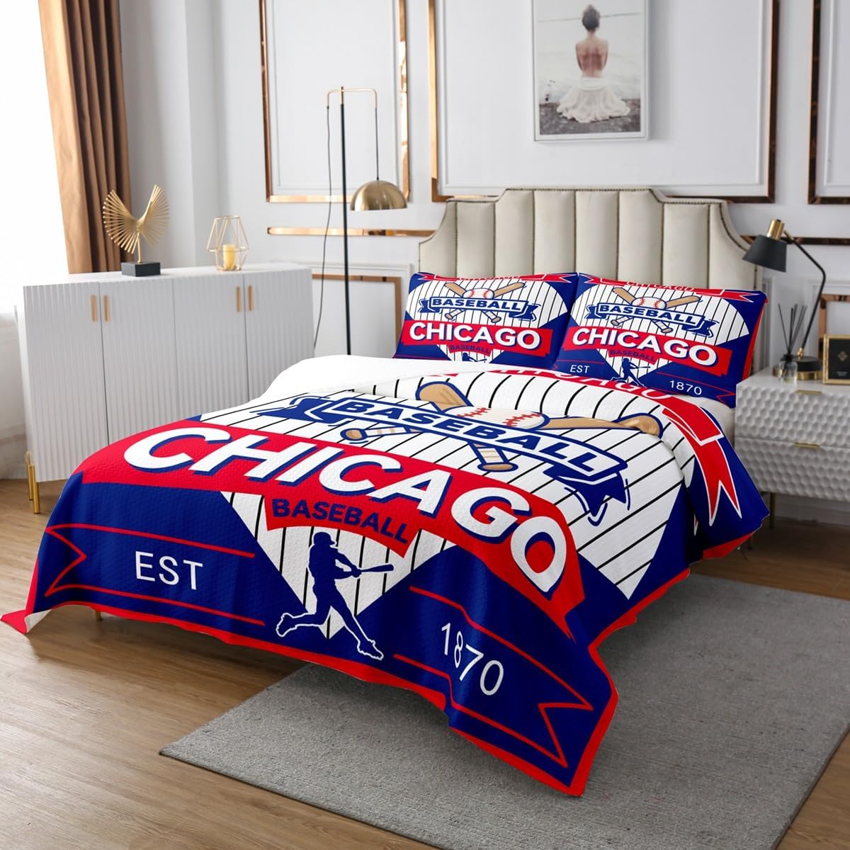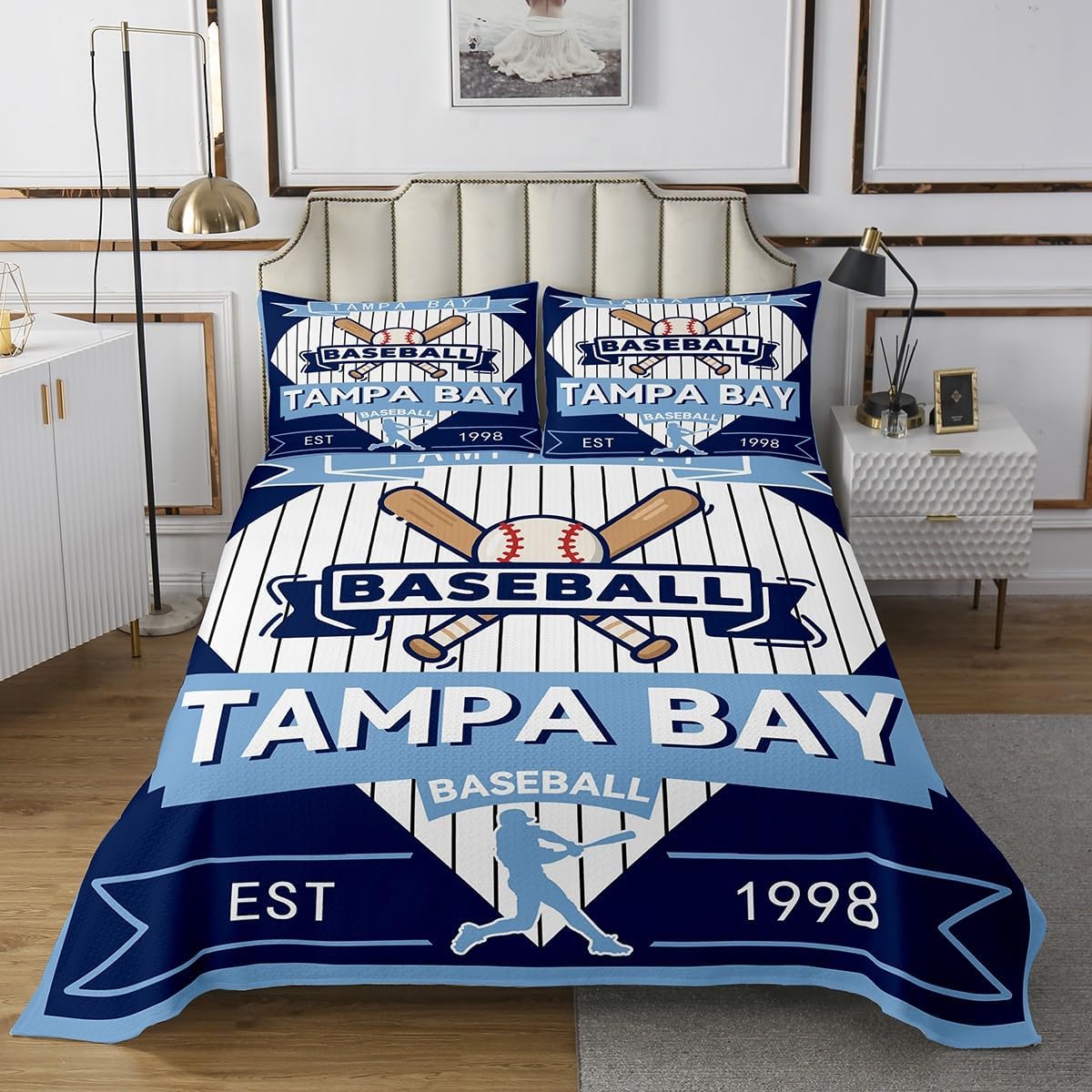 jejeloiu Baseball Bedspread Queen Size New York Coverlet Set Baseball City Quilted Coverlet for All Season with 2 Pillowcases Sports Game Microfiber Lightweight