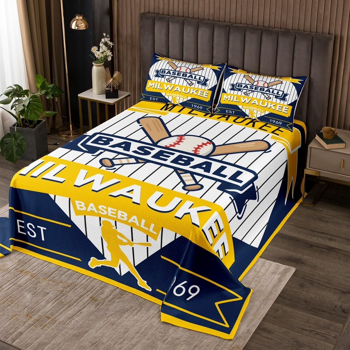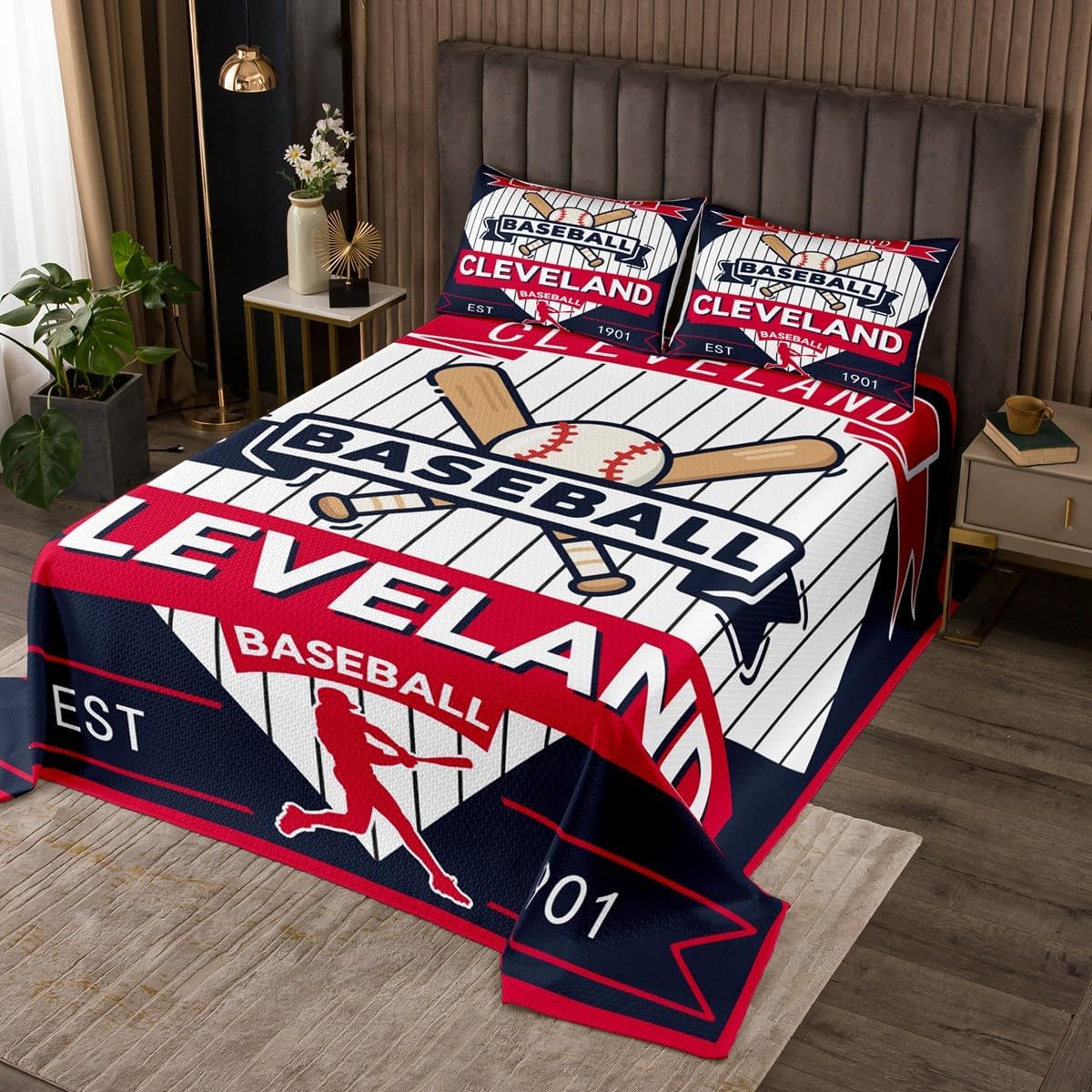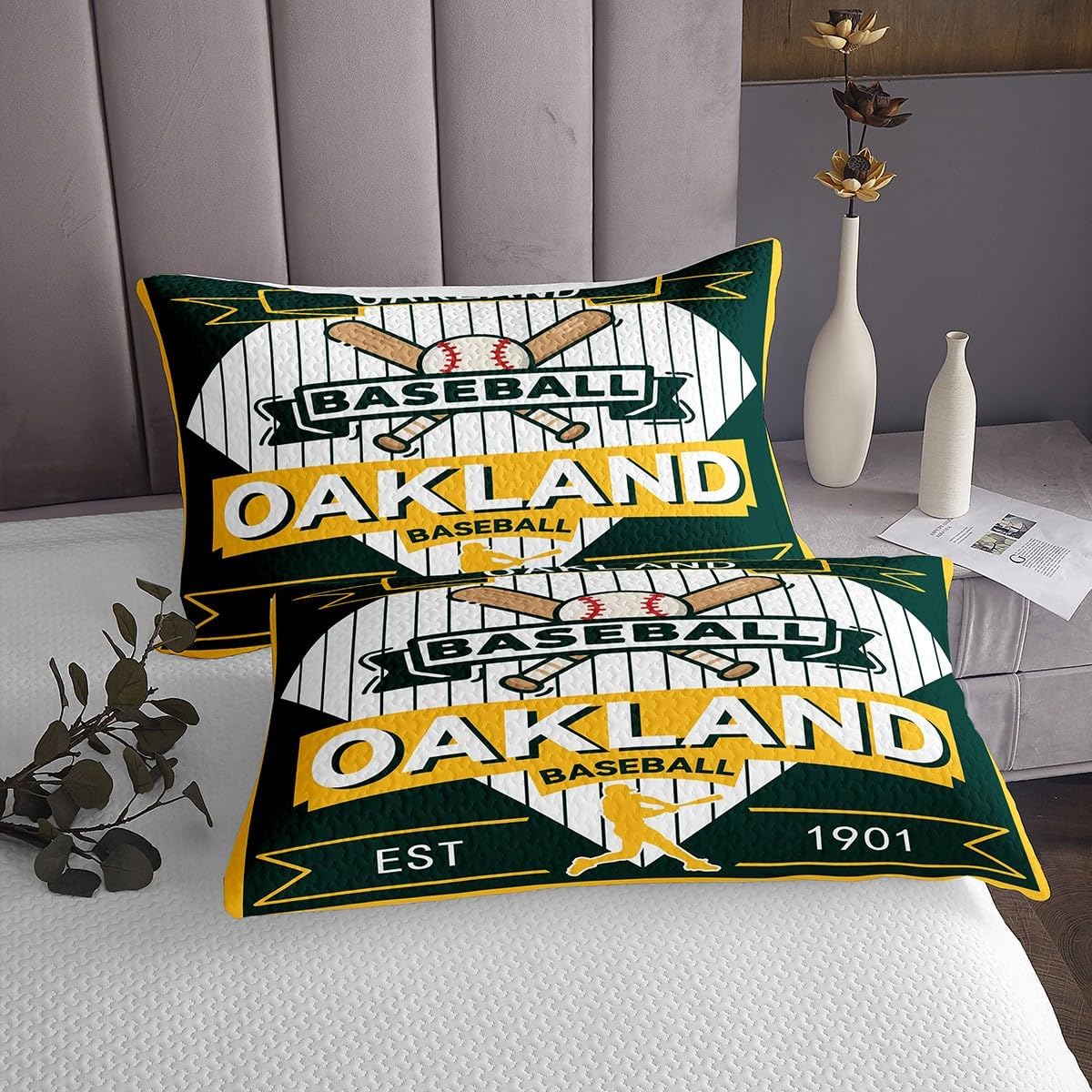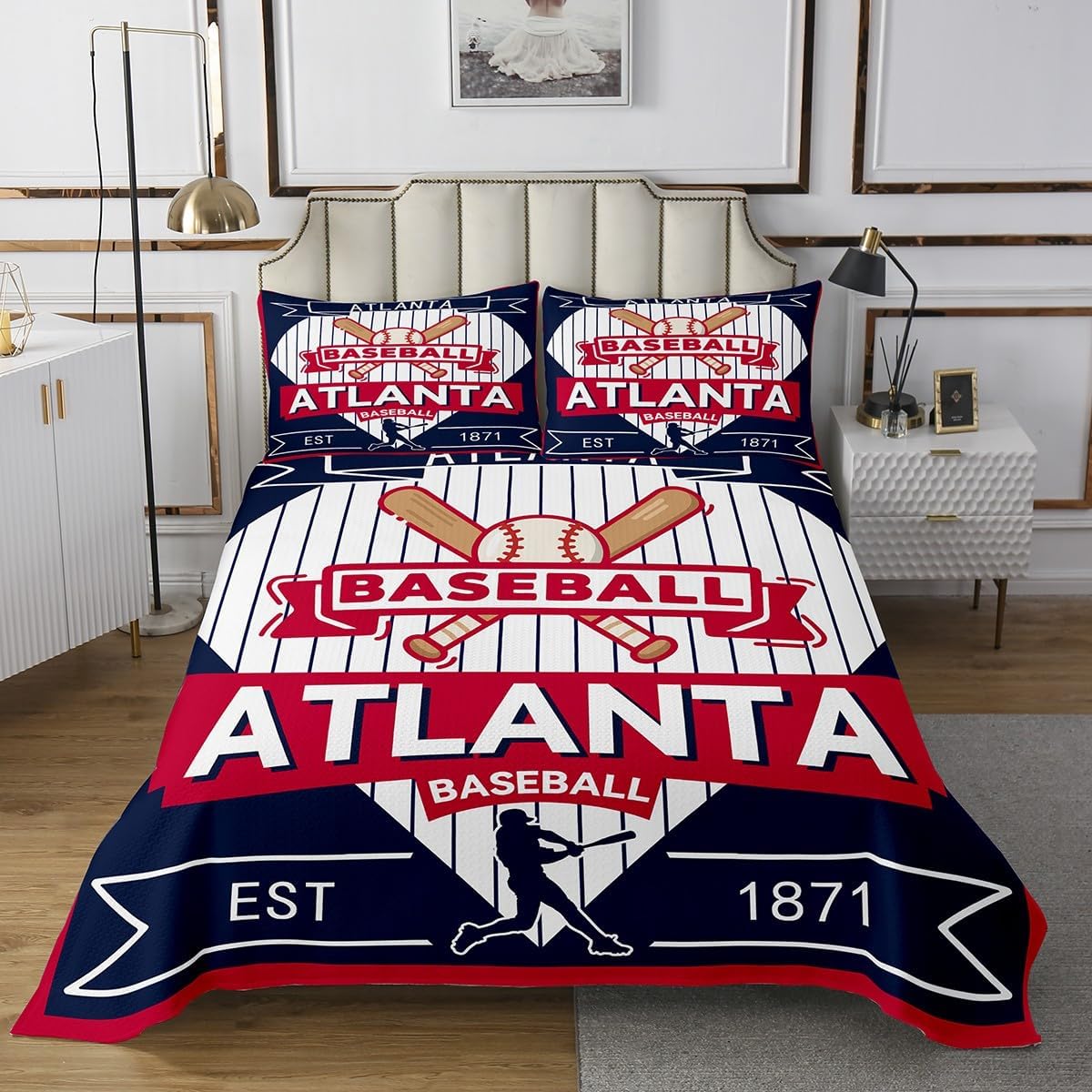 jejeloiu Baseball Bedspread Queen Size New York Coverlet Set Baseball City Quilted Coverlet for All Season with 2 Pillowcases Sports Game Microfiber Lightweight