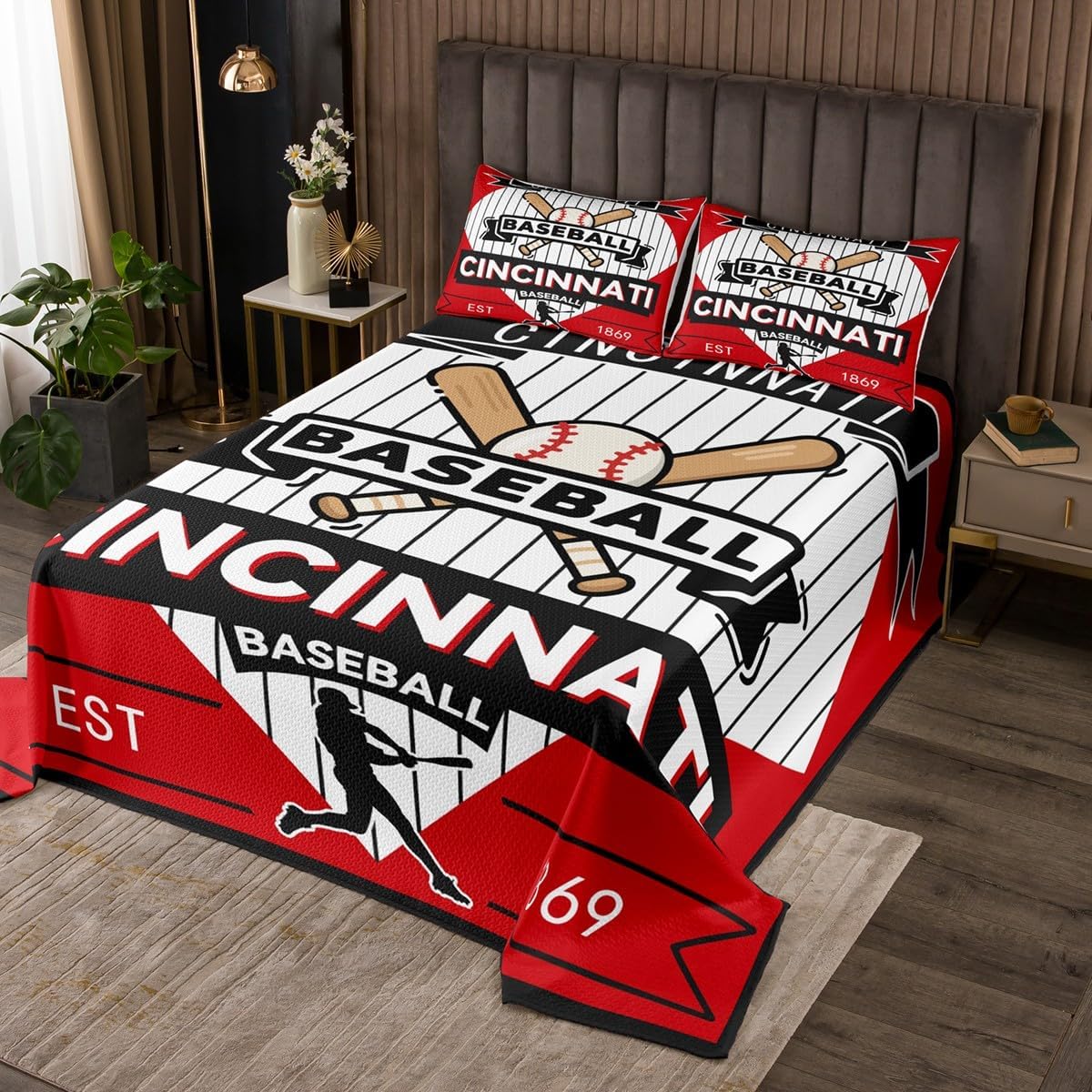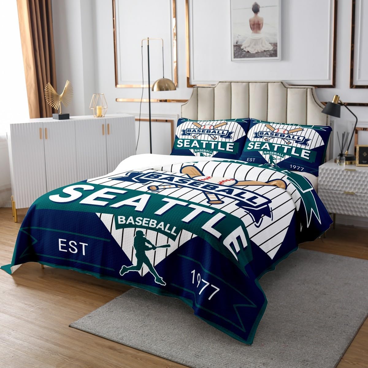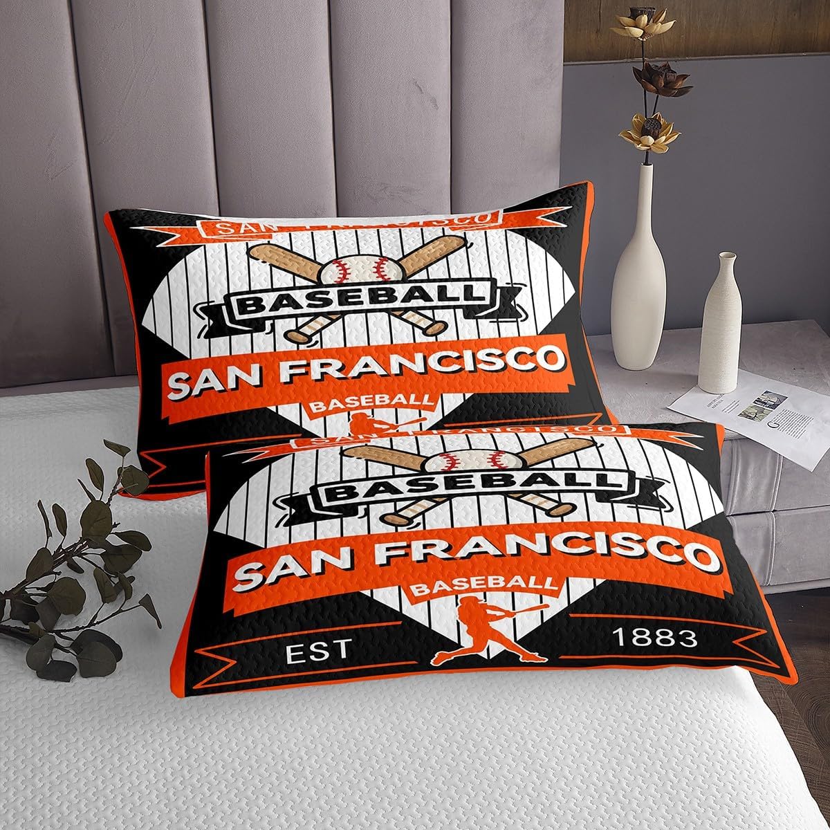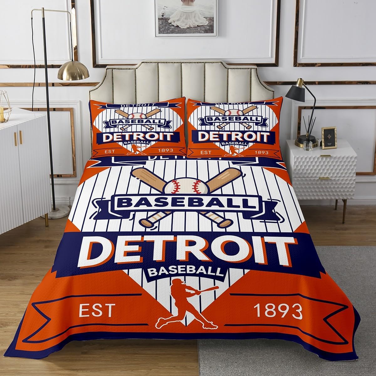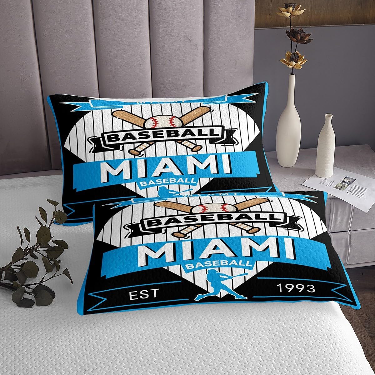 jejeloiu Baseball Bedspread Queen Size New York Coverlet Set Baseball City Quilted Coverlet for All Season with 2 Pillowcases Sports Game Microfiber Lightweight