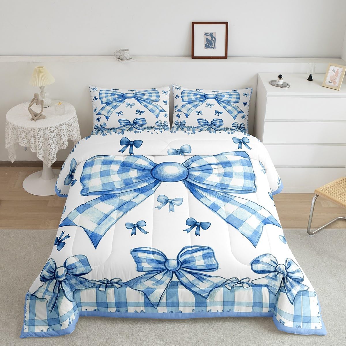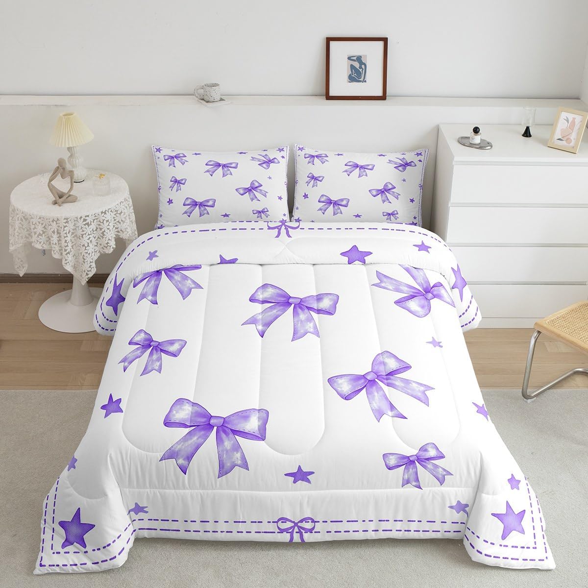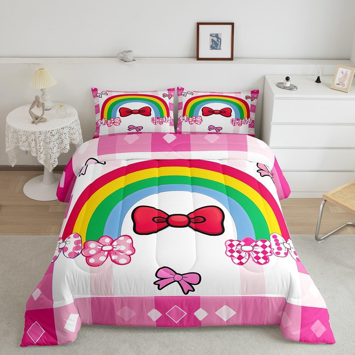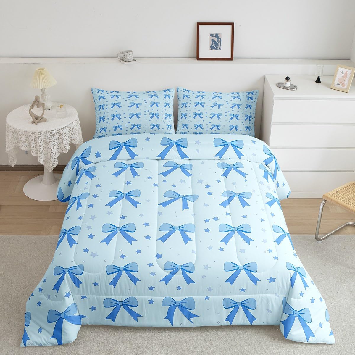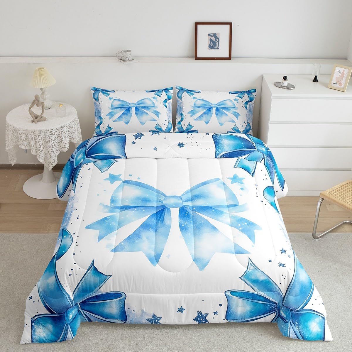 There are more options with various styles of comforter set waiting for youSize Information:1 Toddler size comforter 42" X 58" and 1 pillow sham 30" X 20".1 Twin size comforter 68" X 90" and 1 pillow sham 30" X 20".1 Full size comforter 79" X 91" and 2 pillow sham 30" X 20".1 Queen size comforter 90" X 90" and 2 pillow shams 30" X 20"1 King size comforter 104" X 90" and 2 pillow shams 36" X 20"UsefulMakeover your bedrooms all season with our comforter sets; good item for your room, girls boys youth room, master bedroom. Practical to use for being polyester which is ultra soft and breathableUnique design:Vivid colors with digital printing; these unique designs match well with various color palettes of your rugs, curtains, headboard, furniture, and all other decor accessoriesPersonalized:As manufacturers of digital printed home textiles, we follow current trends and bring you new home fashionBest blessings to your family or friend, relative or boyfriend girlfriend, or to yourself, the item should be interesting and authenticNote:The Comforter and pillow shams are printed on the front side only, the back of them are white colored
