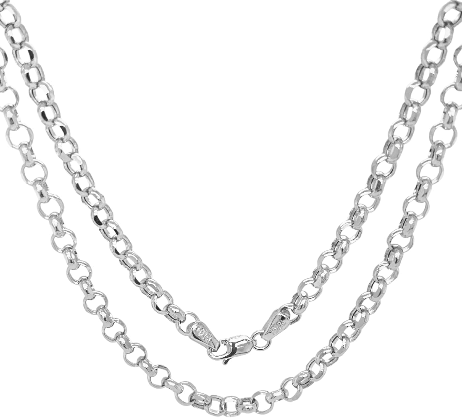 ◆This 14K white real gold rolo link chain necklace is the perfect accessory for women. It is crafted with pure 14k white gold. Polished and stamped for authenticity, giving it a beautiful and lasting shine. Diamond cut provides a sparkling shine and the lobster clasp ensures it stays securely in place. It is ideal for charms and pendants, making it a great way to show your loved ones you care.
