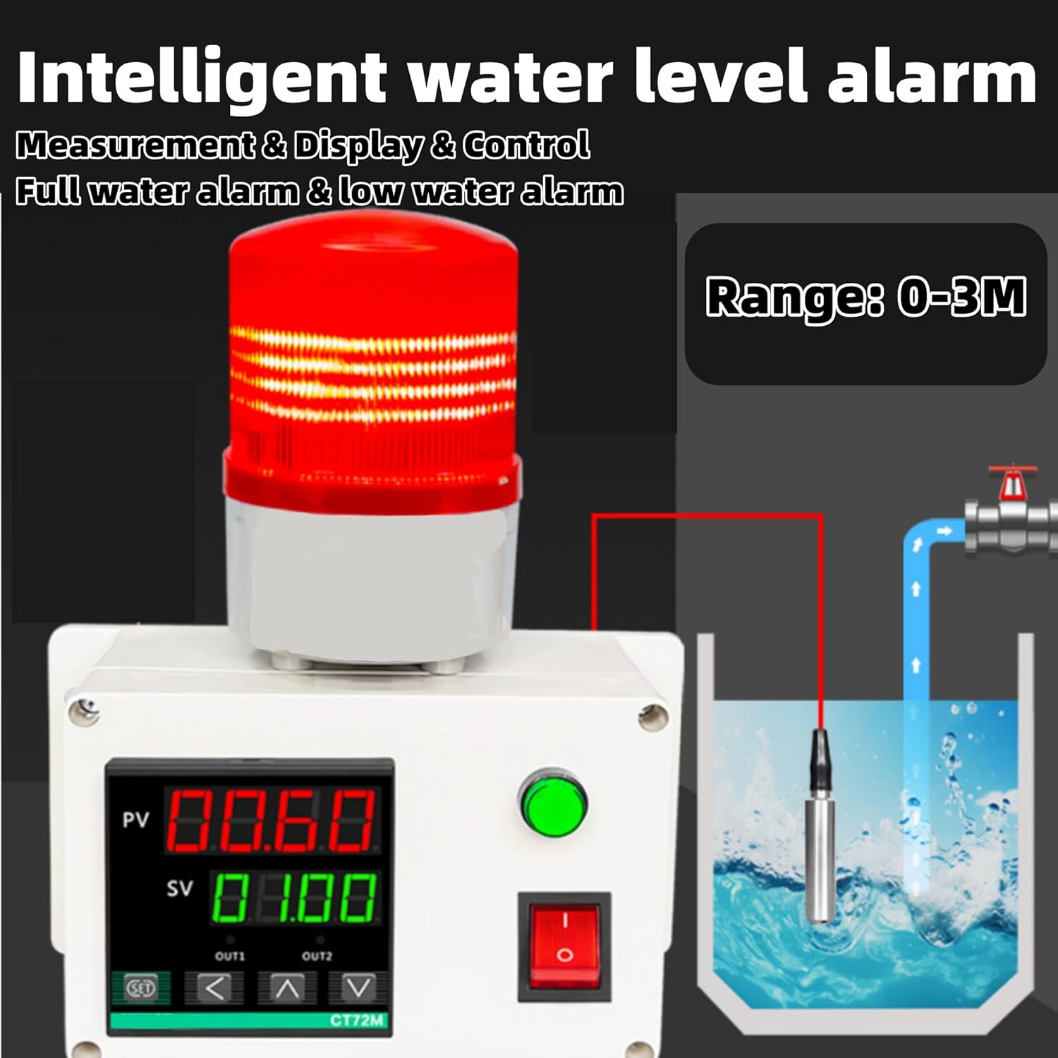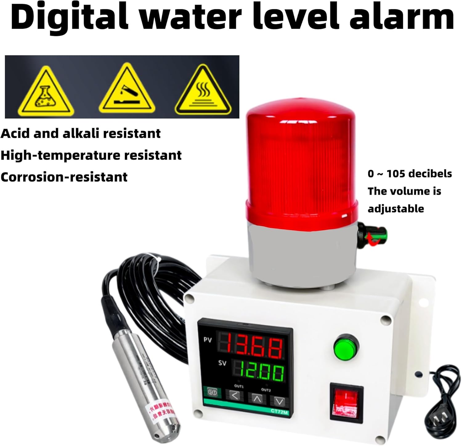 Product type: High and low water level alarm Packaging dimensions: 8.86×4.53× 10.43inches (22.5×11.5×26.5cm) Packaging weight: 1.54pounds (0.7Kg) Color: white Measurement range: 0-3 meters Voltage: 110V Operating temperature: -4-158℉ Adjustable sound: 0-105 decibels