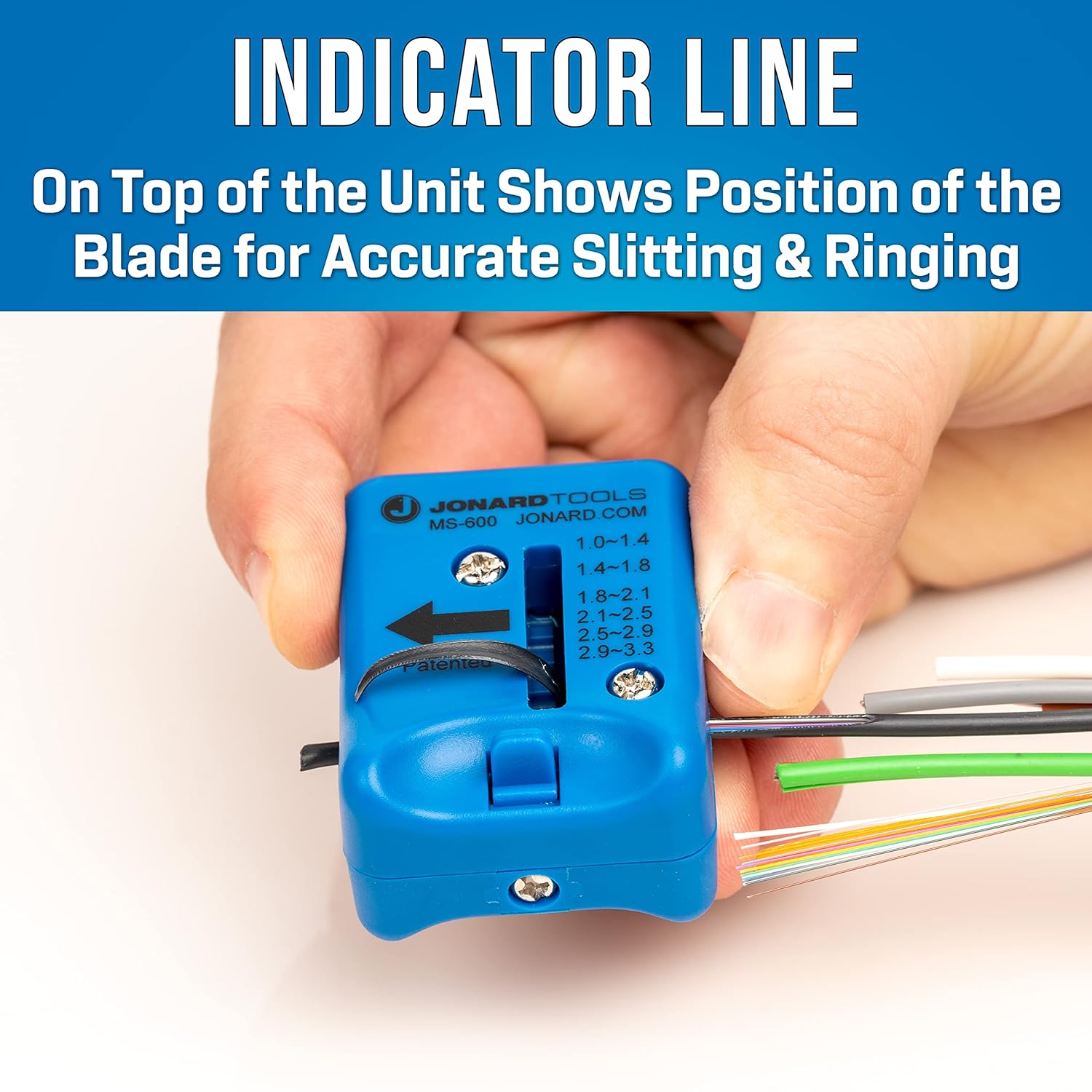 The MS-600 Mid Span Shaving Tool is designed to provide easy access to optical fibers in outer jackets and loose buffer tubes. With 6 precision grooves to handle various cable sizes, the sleek ergonomic design allows you to open a fiber jacket or buffer tube without damaging the fiber inside. Consists of 6 precision slitting grooves ranging in size from 1.0 mm to 3.3 mm Compact design weighing less than 2.5 oz with included tethering hole makes it perfect to use in tight spaces or on the go Indicator line on top of the unit indicates the position of the blade for accurate slitting and ringing This tool was specially designed for use on OFS EZ-Bend® 3.0 mm cable and also works with Corning's outdoor ALTOS® loose tube, Microduct MiniXtend® HD and MiniXtend® cable with binderless FastAccess® Technology, indoor/outdoor FREEDM® and LSZH® loose tube cables, PPC Semiflex 3 mm cable, and other similar style cables Replacement blade set available, part number: MS-600RB Blade lasts for 5,000 shaves Groove Sizes: 1.0-1.4 mm | 1.4-1.8 mm | 1.8-2.1 mm | 2.1-2.5 mm | 2.5-2.9 mm | 2.9-3.3 mm