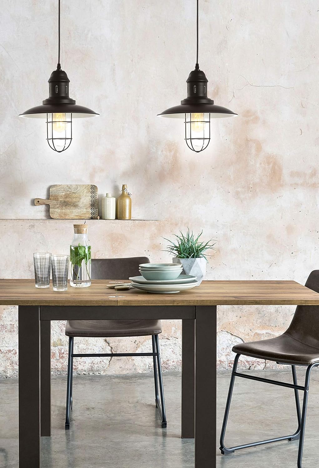 Industrial touches like the cage design of this pendant light add farmhouse charm to a kitchen island or dining room. An LED bulb provides plenty of light, while the black metal finish blends easily with rustic or industrial decor. Perfect for rustic and farmhouse look.