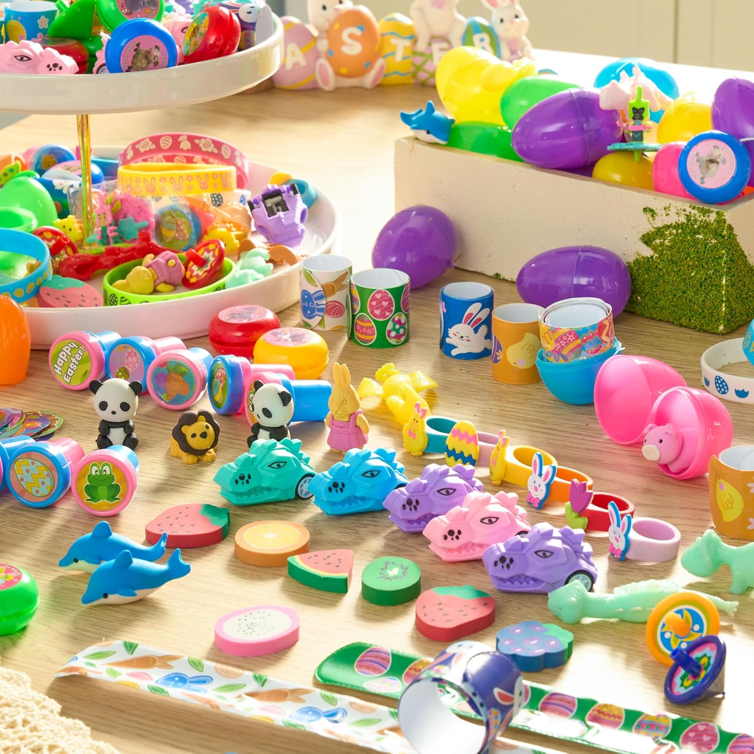 • Super Value Pack: Dive into the ultimate Easter experience with our super value pack! You'll receive 200 Packs of 2.2 inches colorful Easter Egg Shells and 200 Stickers (Toys include Bouncy Monsters,Yoyos, Building Blocks, Sticky Hands, Stamps, Pull Back Cars, Rings, Animal Erasers, Spinning Tops, Fruit Erasers, Silicone Bracelets and Slap Bracelets). It's the perfect solution for hassle-free Easter fun!