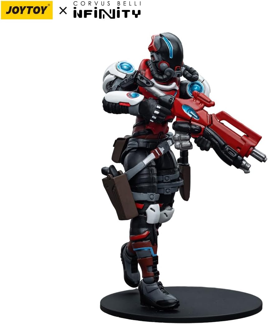 From Joytoy (Bejing) Tech. The JoyToy Action Figure Infinity Corvus Belli Nomads Wildcats Polyvalent Tactical Unit #2 Woman is perfect for collectors and fans of the Infinity universe! With its impressive level of detail and articulation, this action figure is a must-have for any serious collector or fan. This 1/18 scale action figure includes Gun and knife accessories, along with interchangeable hands and a base for display.