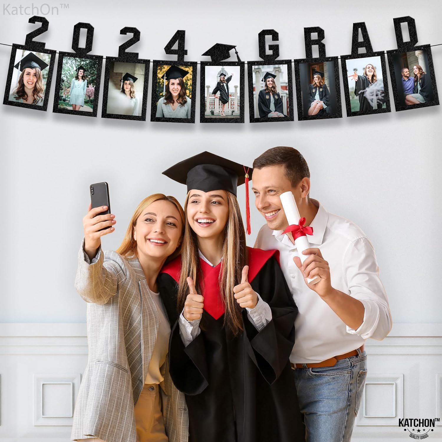 What You Will Get: 1) Black 2024 Grad Photo Banner - 10 Feet Banner Size - 10 Inch Material - Sturdy Felt 2) LED class of 2024 light - 8x5 Inch