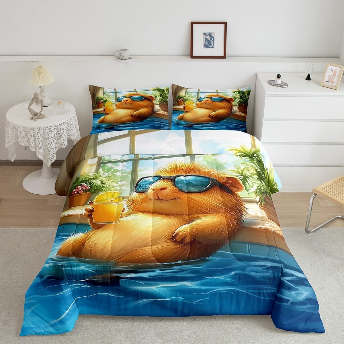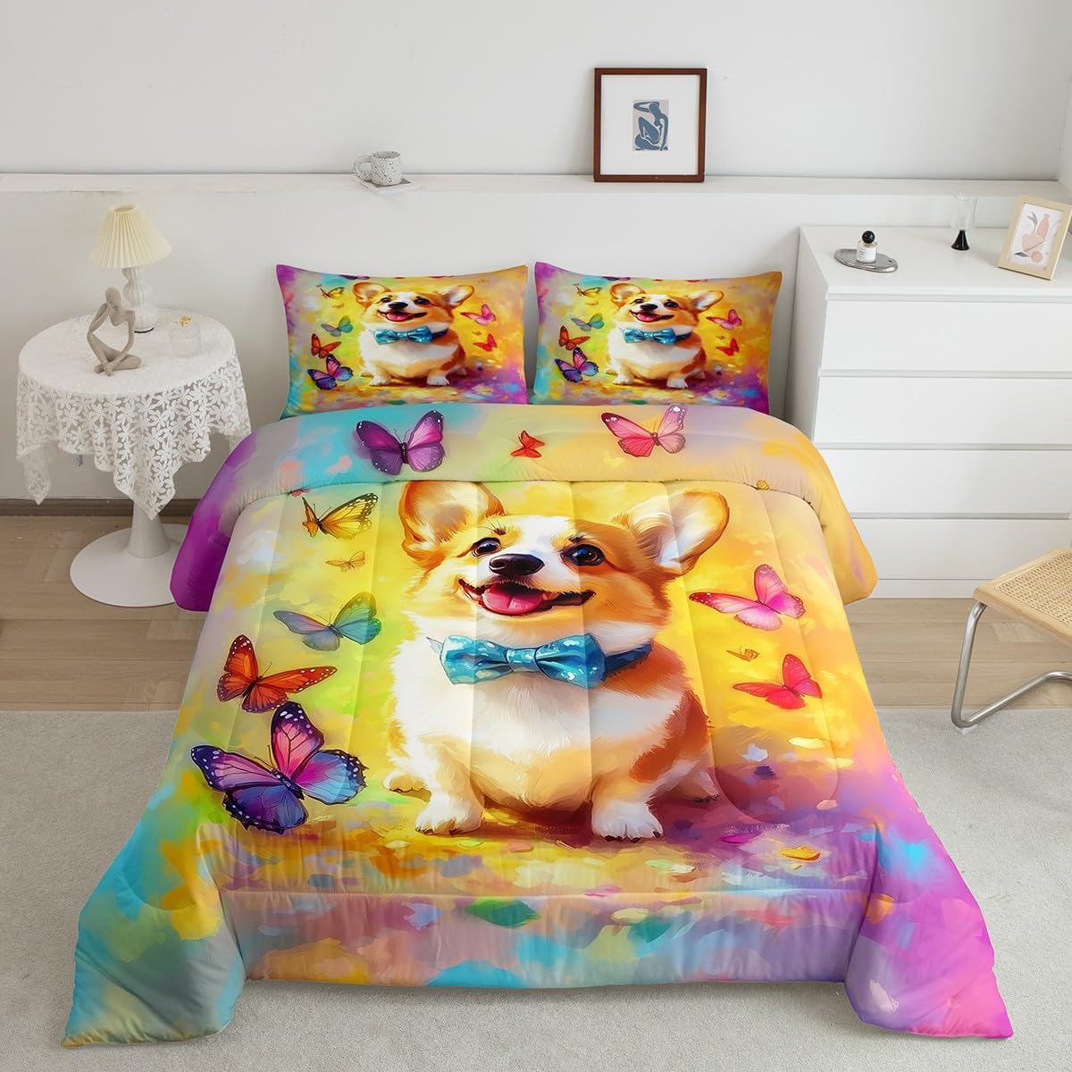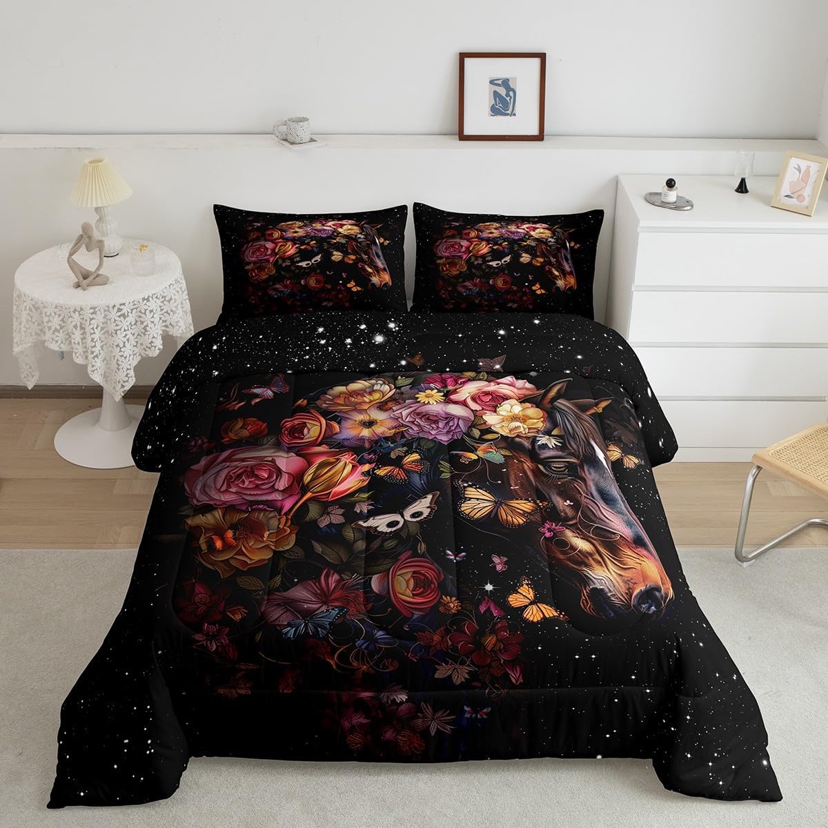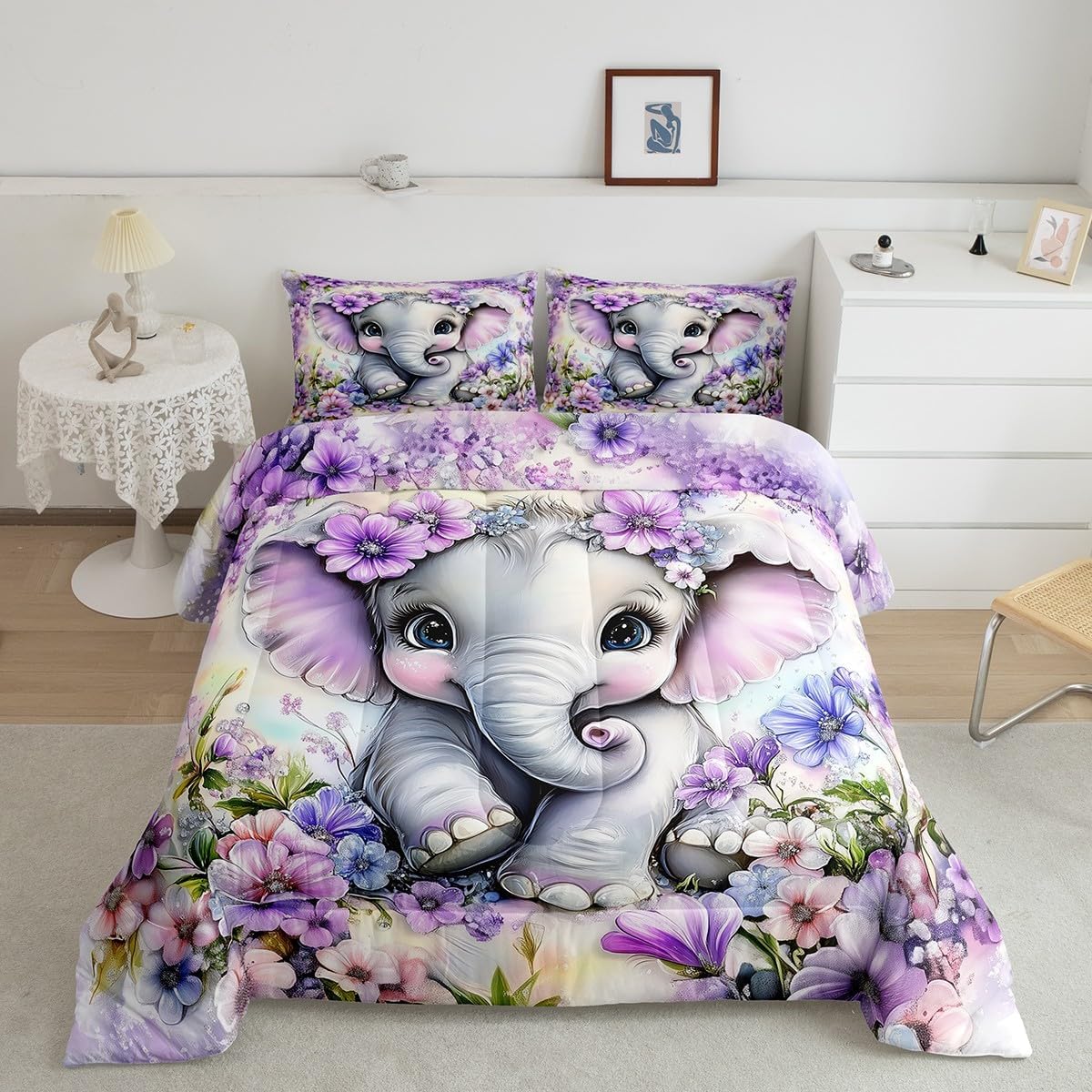 Package Include: Comforter and Pillowcase. Makeover your bedrooms every season with our Comforter sets. Perfect item for your room, girls boys youth room, master bedroom. Size Information: Toddler size down comforter 42"W x 58"L and 1 pillow case 30"W x 20"L. 2pcs with 1 Bed Comforter and 1 Pillowcases in A Bag Twin size down comforter 68" W x 90" L and 1 pillow case 30" W x 20" L. 2pcs with 1 Bed Comforter and 1 Pillowcases in A Bag Full size down comforter 79" W x 90" L and 2 pillow cases 30" W x 20" L. 3pcs with 1 Bed Comforter and 2 Pillowcases in A Bag Queen size down comforter 90" W x 90" L and 2 pillow cases 30" W x 20" L. 3pcs with 1 Bed Comforter and 2 Pillowcases in A Bag King size down comforter 104" W x 90"" L and 2 pillow cases 36" W x 20" L. 3pcs with 1 Bed Comforter and 2 Pillowcases in A Bag Useful and practical A luxurious product for homes, dorm rooms, hotels, guest rooms. Practical to use for being polyester, feels like cotton which is Super Soft and Breathable. No chemicals used, No dye substance harming the health of you or your family. Unique design: Vivid Colors won't fade thanks to new 3D digital printing methods. These unique designs match well with various color palettes of your rugs, curtains, headboard, furniture, and all other decor accessories. Personalized: As manufacturers of digital printed home textiles, we follow current trends and bring you the latest home fashion.