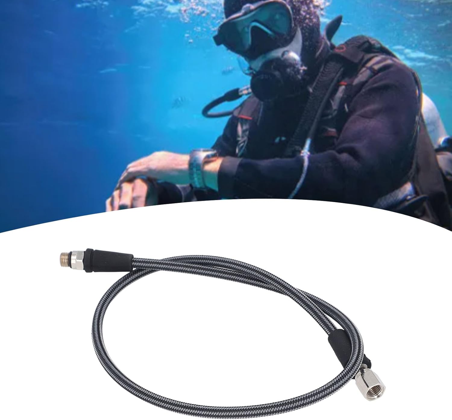 1. HIGH PRESSURE HOSE: The diving high pressure regulator hose is made of woven carbon fiber, providing excellent pressure and abrasion resistance to ensure safety during long dives.2. DIVING HIGH PRESSURE HOSE: Accurately measure the high pressure during the dive, so that divers know the current depth and safety status.3. 7/16‑20UNF INTERFACE: The diving high pressure regulator hose has a thread of 7/16‑20UNF and can be connected to any recreational diving high pressure gauge interface.4. MULTIFUNCTIONAL DESIGN: Suitable for all kinds of diving activities, including deep diving, teaching, etc. It is one of the necessary equipment for divers.5. COMPACT SIZE: The diving high pressure regulator hose is small and compact in size, easy to install and operate, practical and convenient, ideal diving accessory.Spec:Item Type: Diving High Pressure Regulator HoseMaterial: Carbon Fiber Woven, Aluminum AlloyPackage List:1 xDiving High Pressure Regulator HoseNotice:Manual measurement please allow some error.