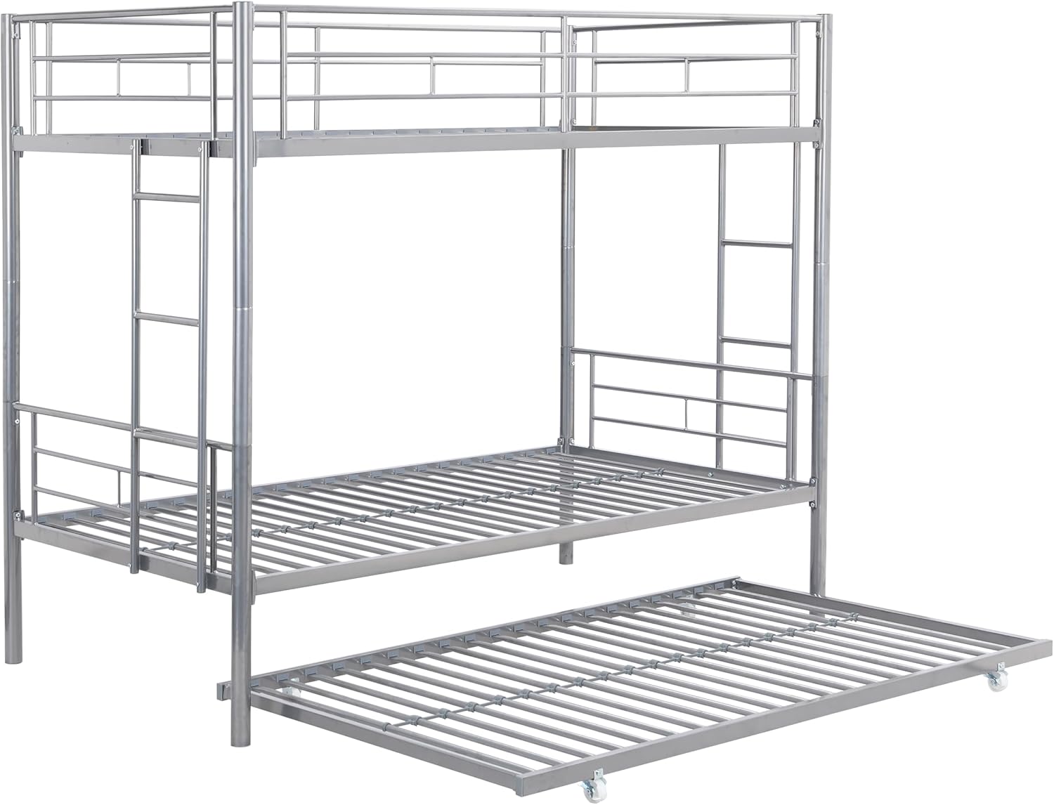 | Item Type Name | KEIKI Twin over Twin Size Metal Detachable Bunk Bed Frame with 2 Side Ladder, Trundle and Guardrail, Modern Style Bunk Beds with Slats, No Box Spring Required, Easy Assembly, for Bedroom, Silver |