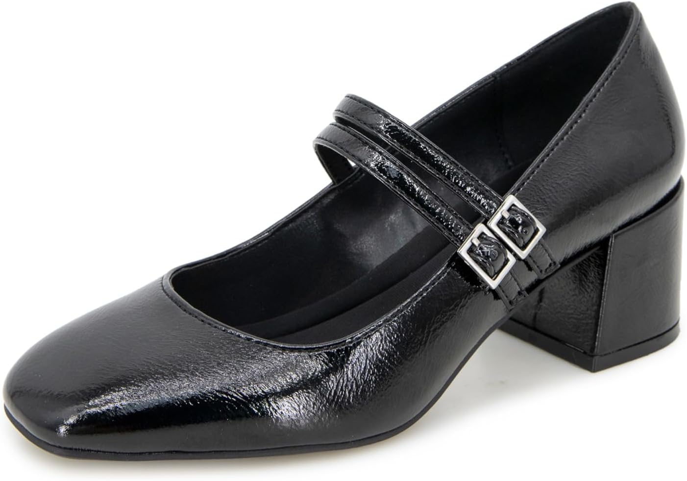 Kenneth Cole Reaction Leeann Mary Jane pump. Block heel pump with double strap Mary Jane detail.