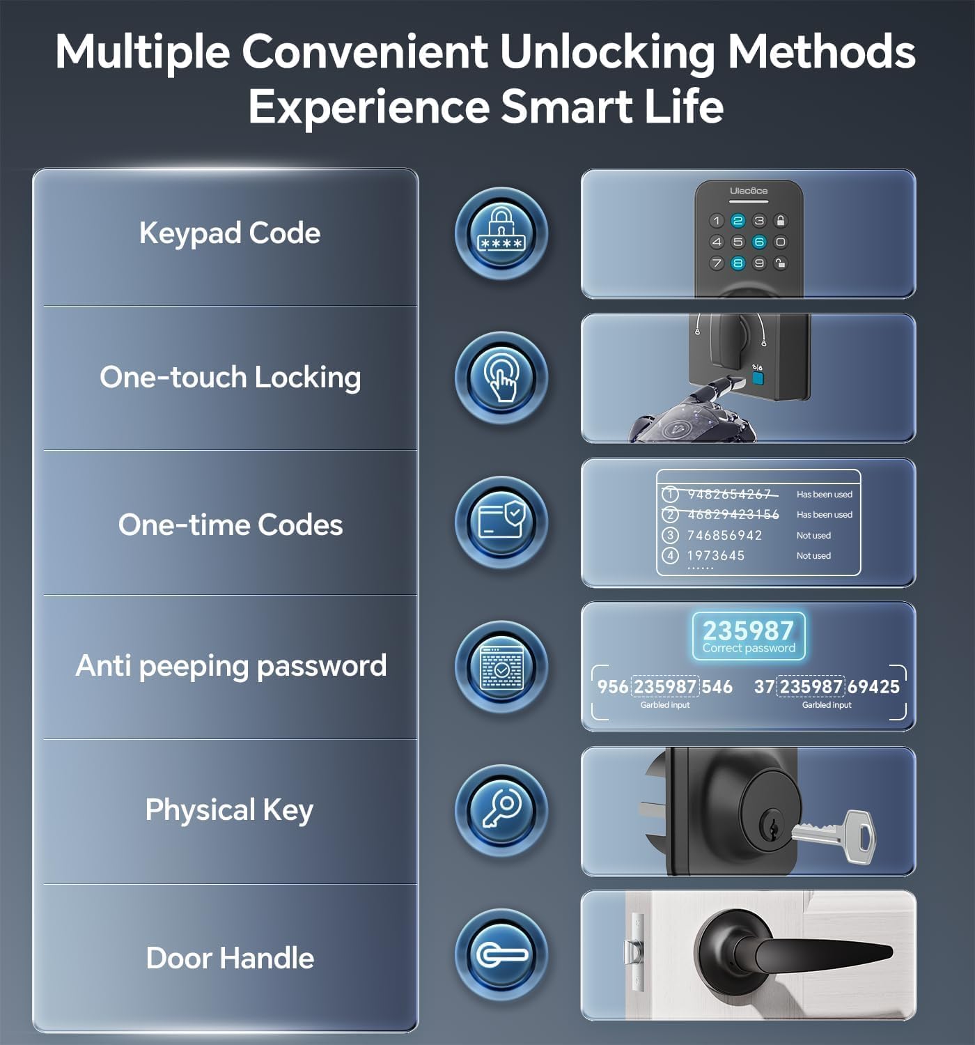 | Additional Features | Anti-Peeping Password, Auto-Lock, Battery Indicator, One-Touch Lock |