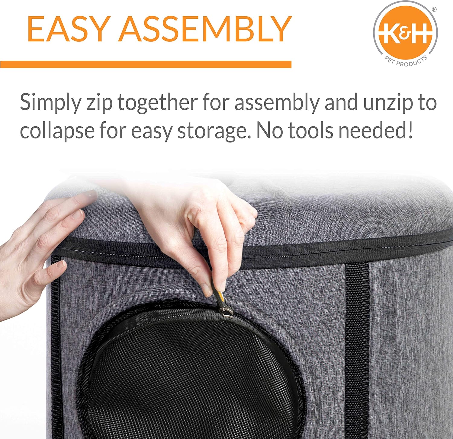 Not only is the K&H Pet Products Mod Capsule a bed and a playhouse, but it’s also a convenient pet carrier making it a value that every cat owner will love. It simply zips together for easy assembly. The mesh door is completely removable for use as a sleeper. Just zip the door back on for use as a transport carrier for trips to and from the vet or for travel. It has a sturdy carrying handle and easily straps into vehicles to transport pets safely. Includes a comfortable, washable pillow. Perfect for small dogs, cats, ferrets, bunnies, and most small animals. One year limited warranty.